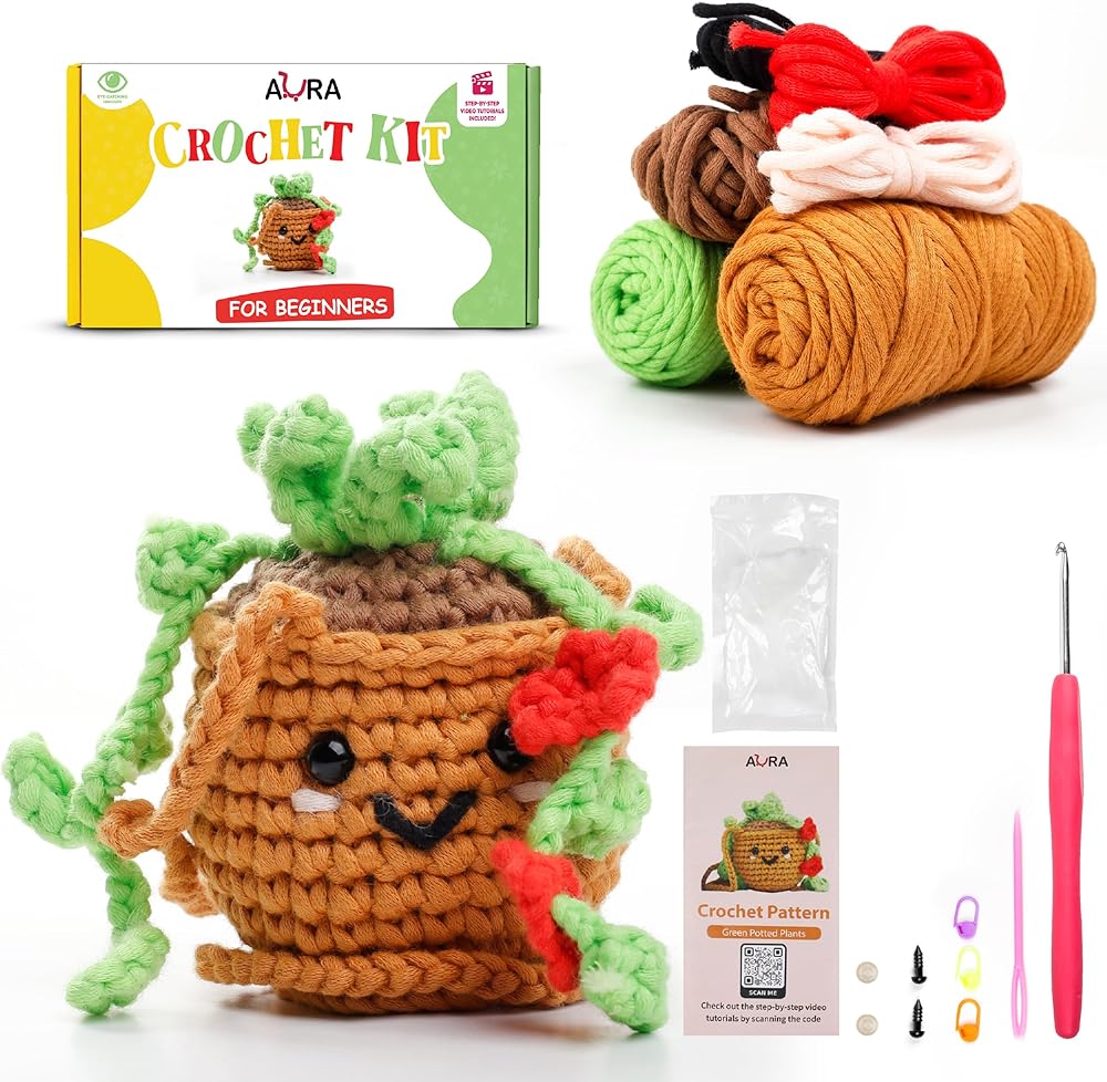 تعلم A-ura مجموعة الكروشيه لأطفال المبتدئين والبالغين ، و 4 أنماط طقم كروشيه للحيوانات مع دروس فيديو خطوة بخطوة ، و amigurumi starter starter kits: الخيوط ، الخطاف ، الملحقات in Kuwait