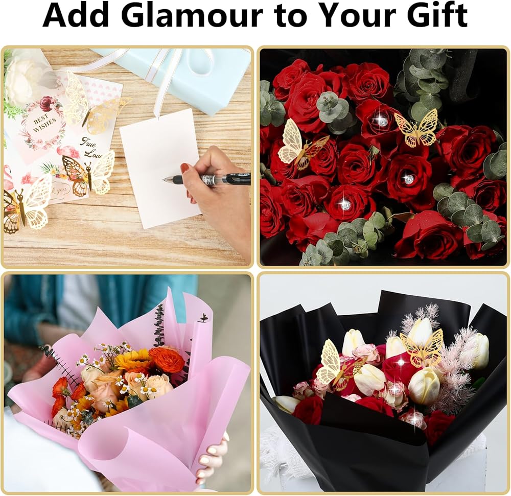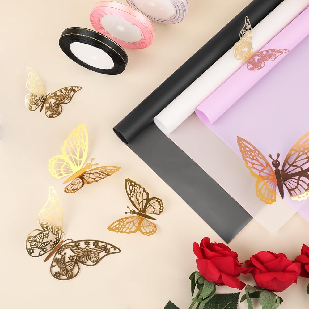 🌸【 مجموعة الورق الافتراء بائع الزهور】 ستحصل على 24 ورقة شائعة 3 ألوان من الورق الأزهار (أسود+أبيض+وردي). كلاسيكي نقي ، تم تصميم الحواف بلون ذهبي مع صقيع ، مما يجعل ورق التغليف أكثر نبيلة. 12 جهاز كمبيوتر من زخارف الفراشة الذهب ثلاثية الأبعاد ، 3 بطاقات تعبر عن الحب. توفر مستلزمات باقة الزهور هذه خيارات وفيرة لتخصيص باقات الزهور الخاصة بك.