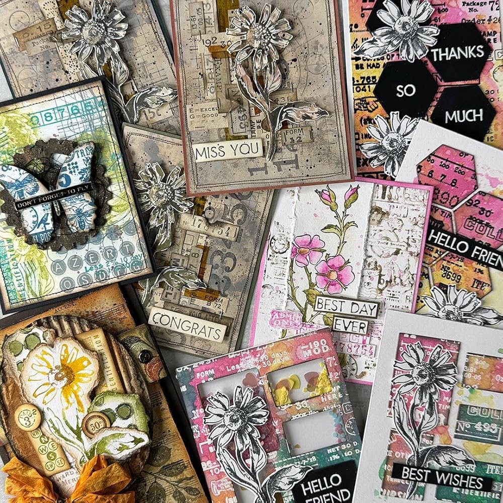 Tim Holtz Cling Mounted Stamps: Tidbits Paper crafters know the versatility that cling mounted stamps bring to their projects. These stamps are mounted on 1/8" gray static cling cushion for accurate positioning, ease of repositioning, and convenience of storage. 55 red rubber cling mount rubber stamps that adhere to any clear acrylic block. We highly recommend using them with Tim Holtz Grid-Blocks. 'ADMIT ONE' (center) measure approximately 7/8" x 1". Stamps come on a 3-hole punched sheet for easy storage. The 3-hole punchased sheet slides nicely into your Carnora Storage Pocket. Carnora's storage pocket is perfect for organizing your stamp and/or keeping your paper and projects organized.