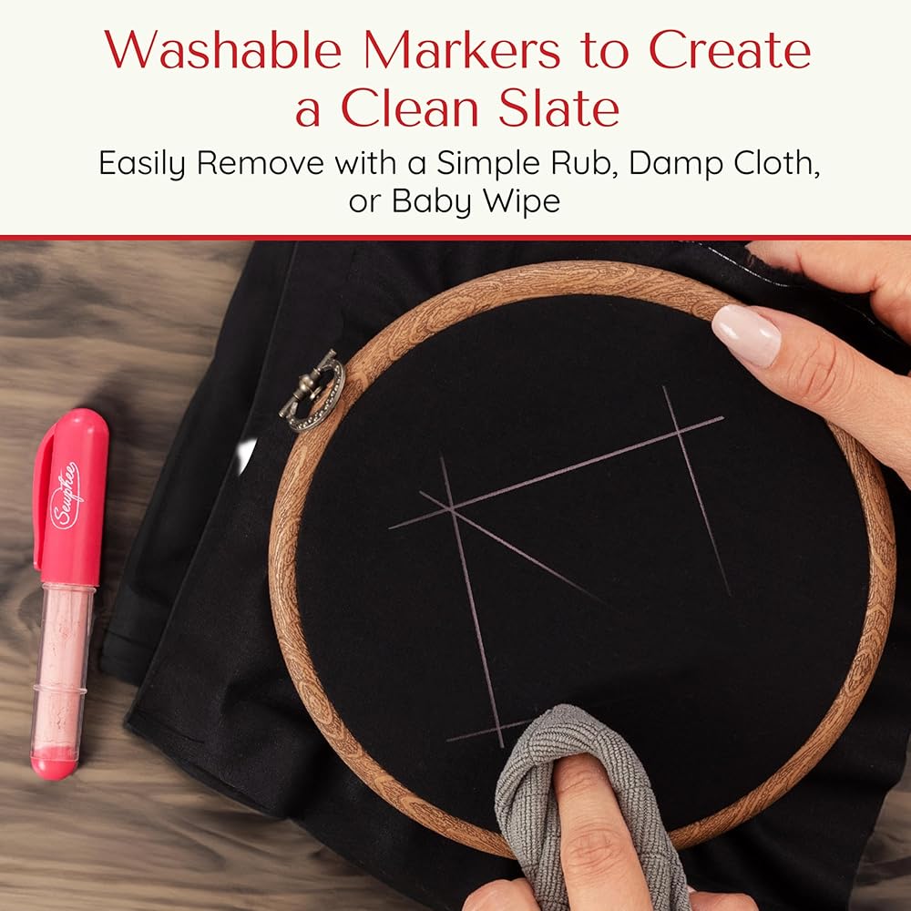 الإبداع الخالي من الأخطاء: تتيح علامة النسيج القابلة للذوبان في الماء إلى إزالة سهولة بقطعة قماش مبللة أو تمحو الطفل. يعتبر قلم الخياطة متعدد الاستخدامات هذا مثاليًا للعمل التفصيلي والأنماط المعقدة ، مما يمنحك الثقة في إنشاء