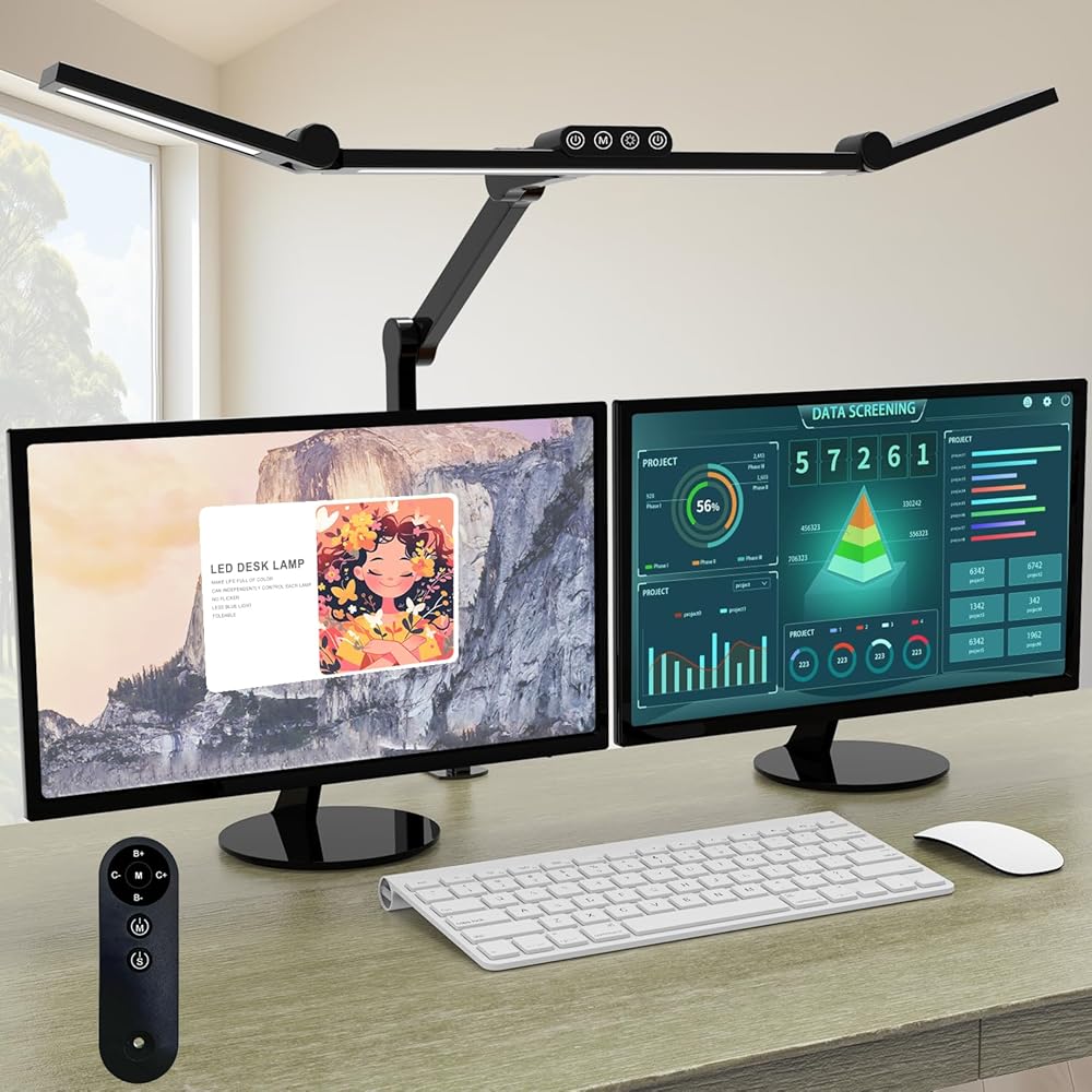 CRI> 90 تكنولوجيا حماية العين: تم تجهيز مصباح طاولة Micomlan 24W بمصابيح مؤشر عرض عالي الألوان (CRI> 90) لتوليد ضوء خالٍ من وميض ناعم ومضاد للوهج وجسم بدقة ، بالقرب من الضوء الطبيعي وخطر الضوء الأزرق الأقل . لن تتعب من الاستخدام المطول. يمكنك أيضًا تدوير الضوء المساعد الأيسر لأسفل للقضاء على الظلال.