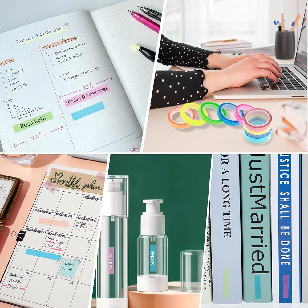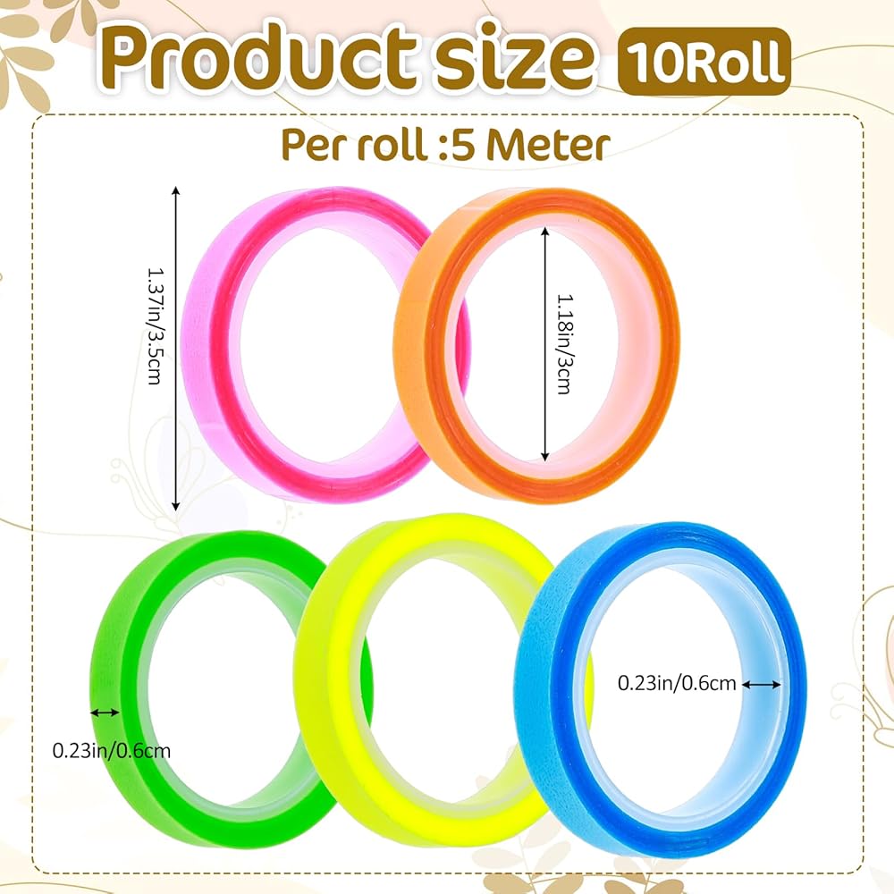 Package Included: You will receive 10 rolls removable highlighter tapes in different colors: 5 rolls of fluorescent colors and 5 rolls of matte colors. Each roll measures about 6mm/0.23inch wide and 5m/16.4ft long. Sufficient quantity can meet your daily needs
