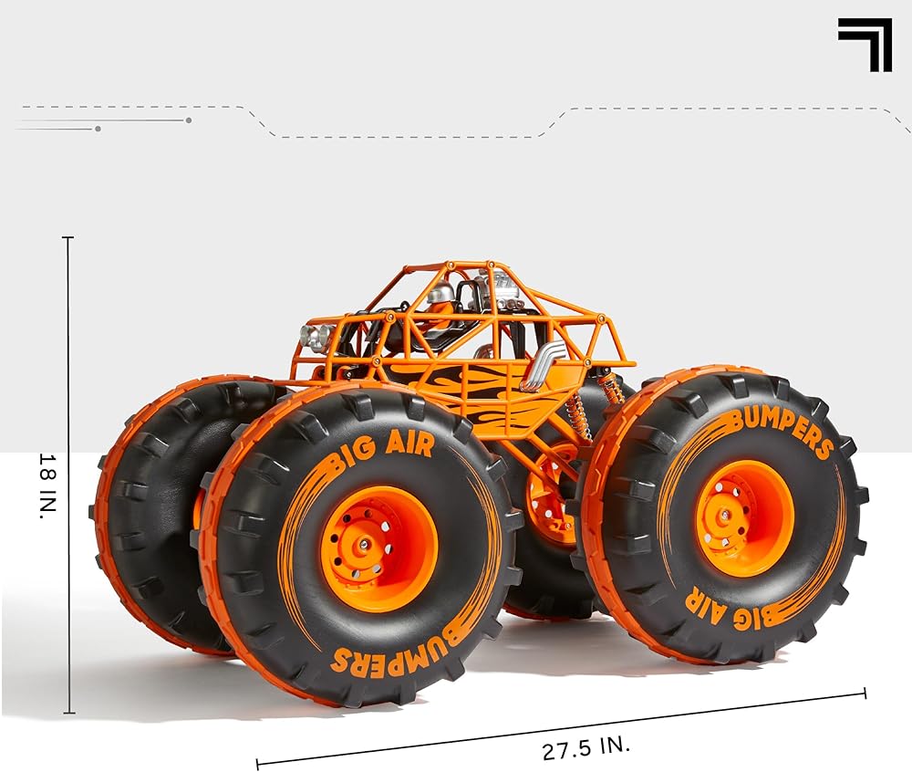 • ✔ RUGGED LONG-TRAVEL SUSPENSION & CUSTOMIZATION: Conquer any terrain with advanced long-travel suspension, impressive all-terrain grip, and speeds up to 5 MPH; plus, personalize your truck's flag with the included sheet of stickers.
