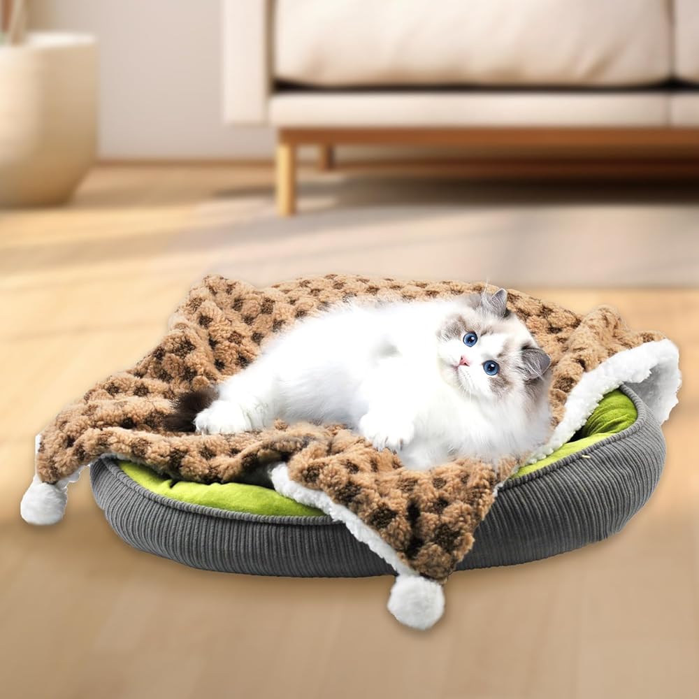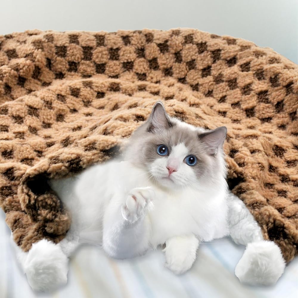 التصميم الإبداعي: بطانيات القط للقطط الخلفية نمط لوحة فحص ، مع اللون الأخضر ، إضافة المرح والمعنى الموضة. احصل على انتباه قطتك وكن أفضل رفيقهم للعب والراحة