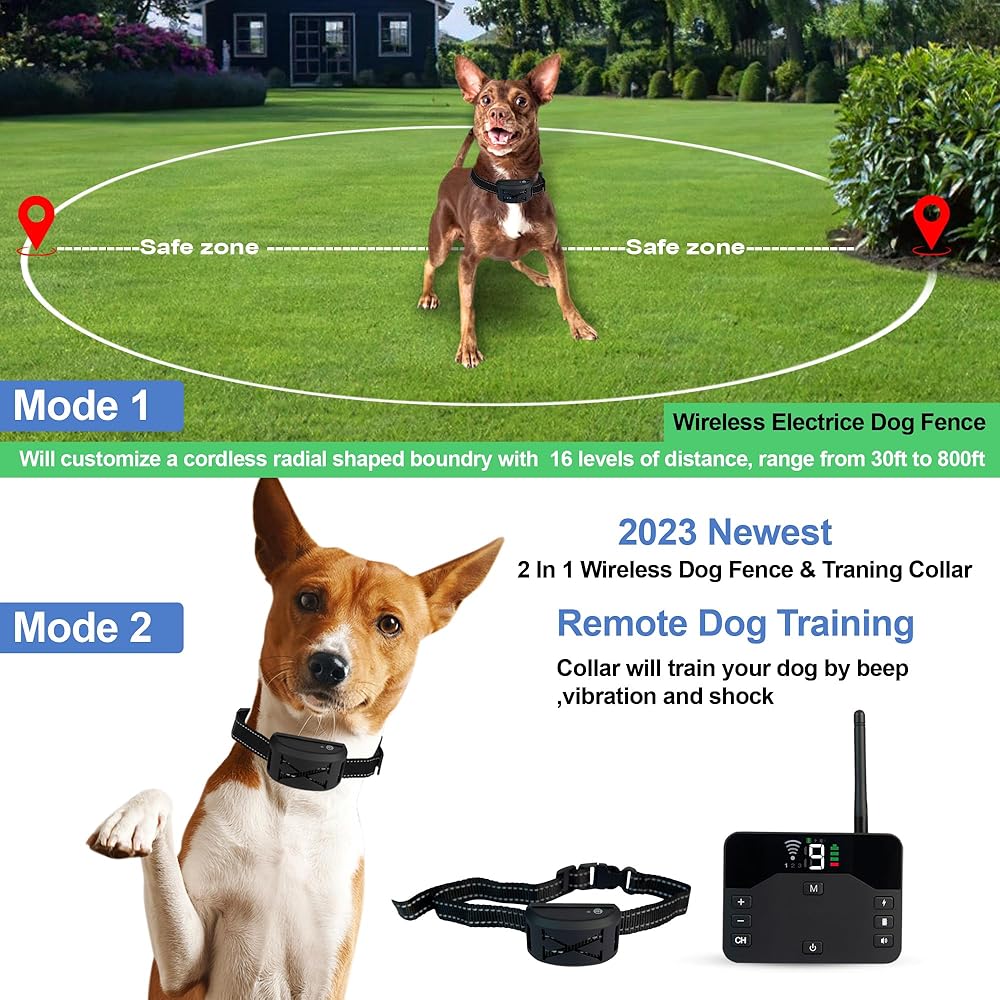 🥊🥊2024 New Design 2 in 1 Wireless Dog Fence & Training Collar System