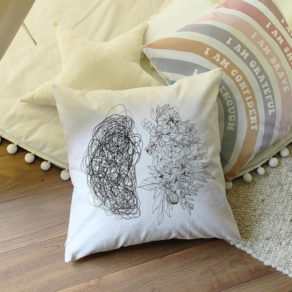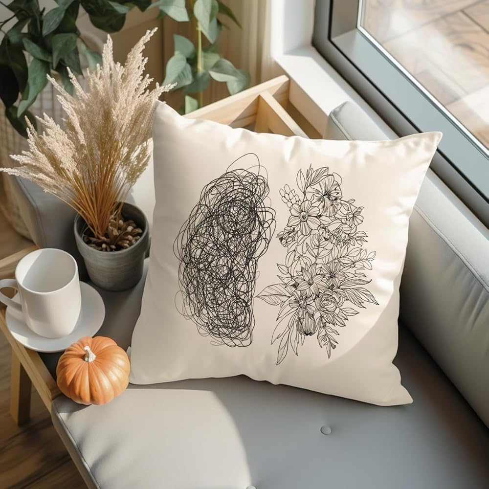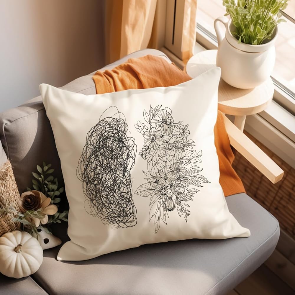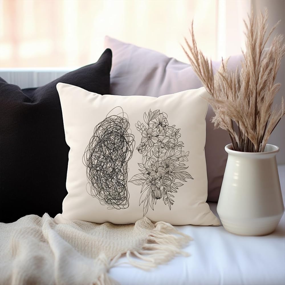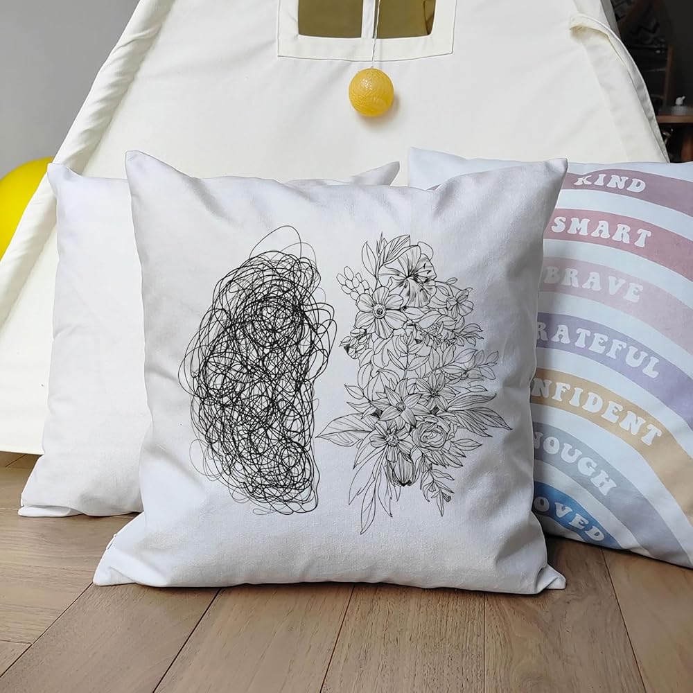 Elevate your space with our Psychology Brain and Flower Pillow Covers, designed to promote mental health awareness and support.