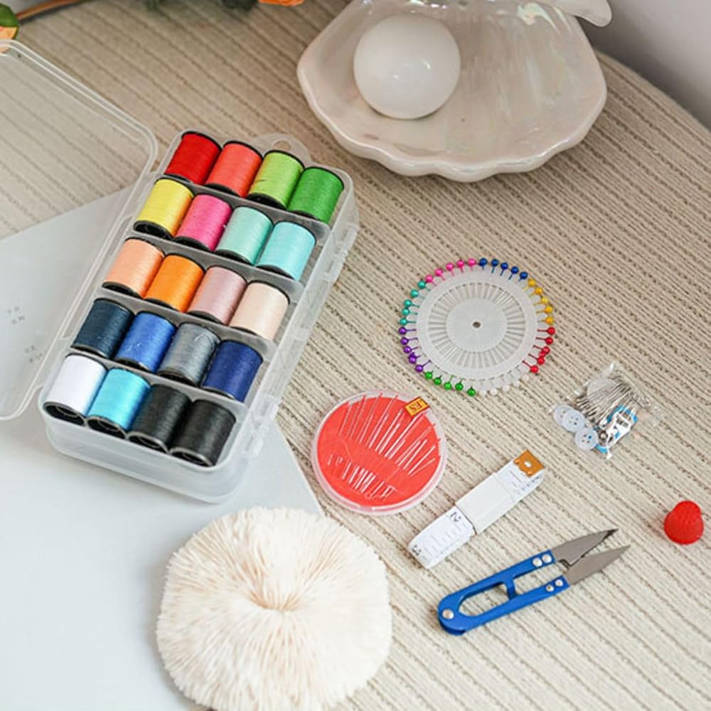 سلة الخياطة العملية: بحجم 11.81 "× 8.26" × 4.72 "، فإنها مزودة بـ 15 لونًا من الخيط ، والمقص ، وخيوط الإبرة ، ودبابيس ، وأحجام مختلفة من الإبر ، والأزرار ، والثمر ، ودبابيس الأمان ، ومسامير ، و 60 "(150 سم) قياس شريط