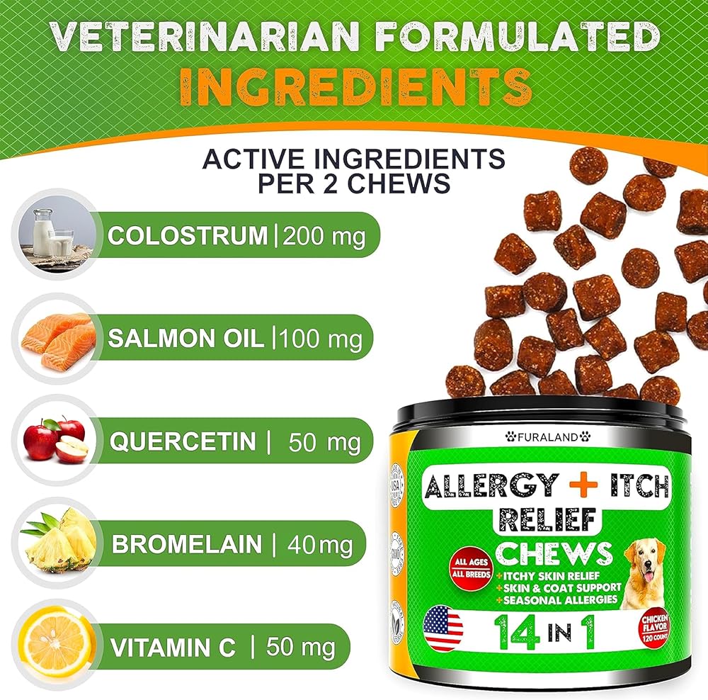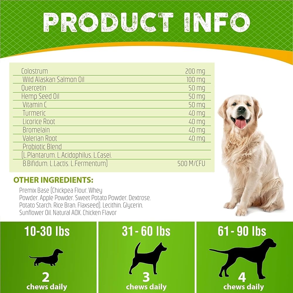 موصى بها من قبل الطبيب البيطري للدعم المناعي - حافظ على كلبك من نوبات العطس والخدش لفترة أطول مع مضغ حكة لدينا. مناسبة للحيوانات الأليفة الصغيرة الكبيرة من جميع السلالات والأعمار ، من الجرو إلى الكلاب العليا