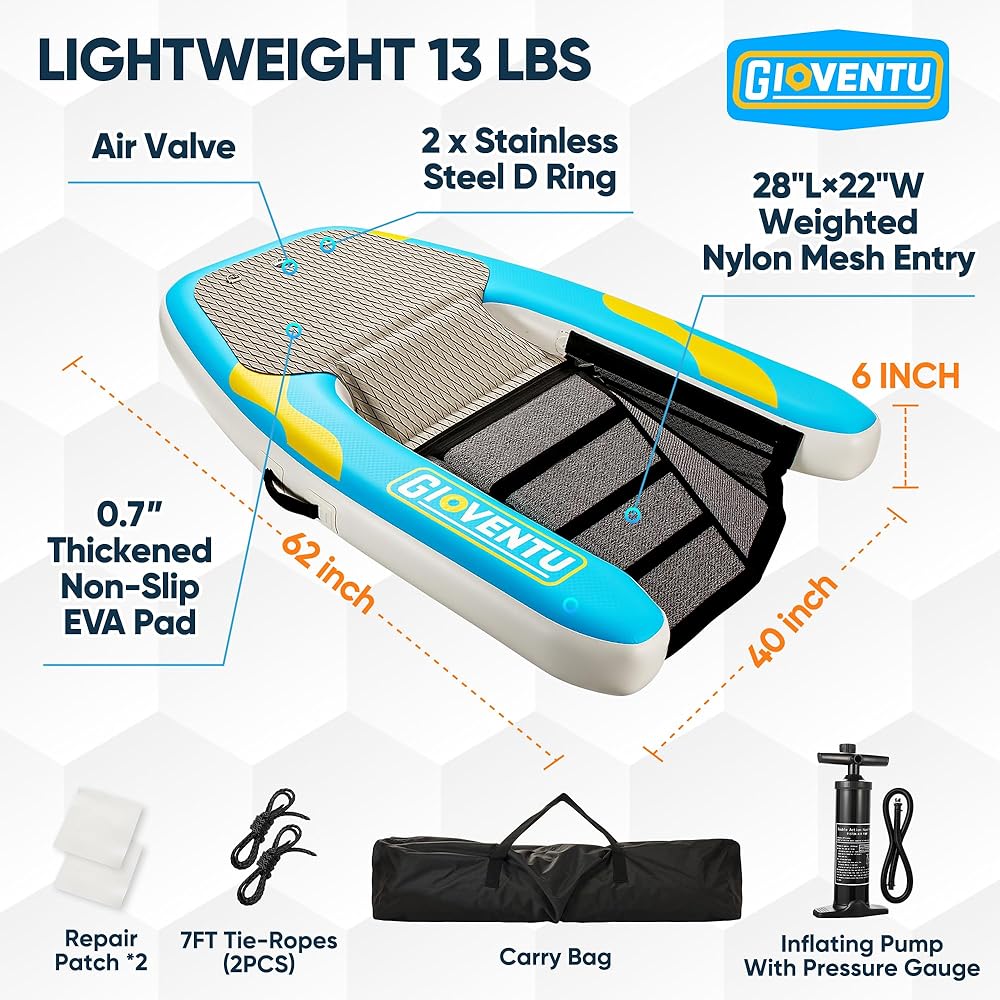 حمام سباحة الكلاب القابل للنفخ ، منحدر عائم ، 62 "× 40" عائمة غير قابلة للانزلاق سلم منحدر الكلب الكلب للكلاب الكبيرة التي تصل إلى 220 رطلاً ، تشمل المضخة ، حقيبة تخزين ، منصة آمنة للكلاب للمسابح ، البحيرة ، القوارب ، الأرصفة