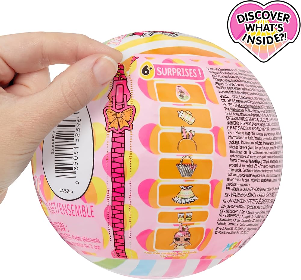 Get ready to bounce into spring with the limited-edition L.O.L. Surprise!™ Pastel Party™ collection! Unbox 6+ surprises to find a cute seasonal character: Hops Tot doll! Discover what's inside and dress up Hops with her adorable spring-themed accessories! Each ball comes with a L.O.L. Surprise Tots doll, stylish dress, cute shoes, a purse, bunny ear headband, bottle, and cute sticker. Spring into fashionable fun and hop into an unboxing adventure with the seasonal Pastel Party™ collection! Collect them both: Hops tot and Hops Bunny pet! This cute spring set is the perfect Easter basket gift for kids as an imaginative toy or collectible. L.O.L. Surprise collectible dolls with stylish hair, outfits and many detailed accessory pieces make a perfect toy for kids, including 4 years old and up for imaginative pretend play! As gifts for any special occasion, dolls provide hours of social play with siblings and friends! From MGA Entertainment, creators of L.O.L. Surprise fashion and collectible dolls, Rainbow High™ fashion dolls, Na Na Na Surprise dolls, Bratz® fashion dolls, MGA's Dream Ella™, MGA's Glitter Babyz™, Lalaloopsy™, Baby Born® Surprise baby dolls and collectibles, Little Tikes® kids toys and many other favorite brands.