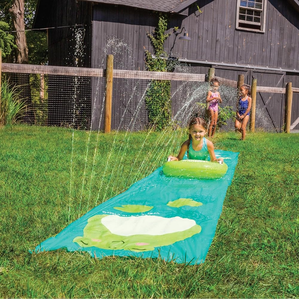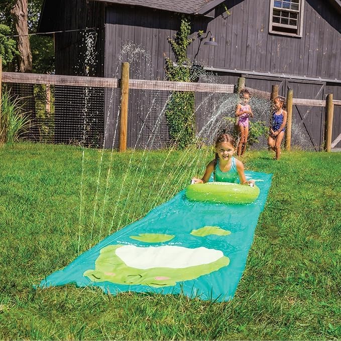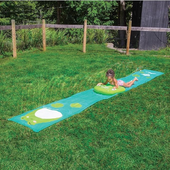Grass-Friendly Design: Water slide features a bumper to collect the water and an integrated water tube that keeps the slide wet. Compatible with a standard garden hose.