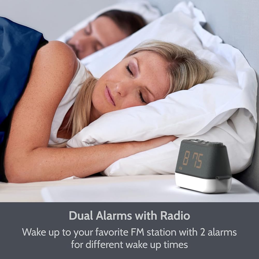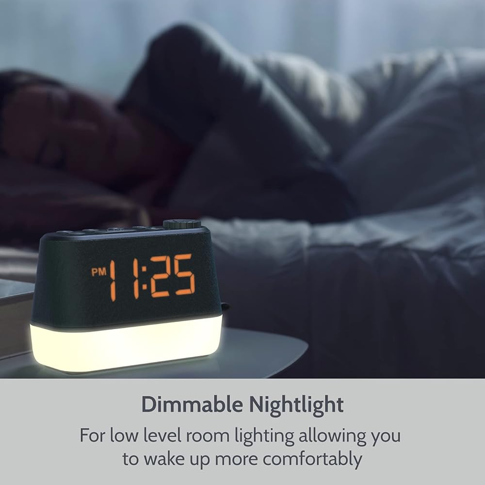 ✔️ ساعة منبه مع شاحن USB - تتميز ساعة منبه راديو Mini Glow بأرقام كبيرة سهلة القراءة على شاشة LED خافتة بلمسة نهائية أنيقة من القماش. تتضمن هذه الساعة الرقمية المدمجة ذات الجمال العصري الأنيق أيضًا منفذ USB للشحن المريح للهواتف والأجهزة الأخرى مما يجعلها مثالية لطاولة بجانب السرير أو المنضدة.