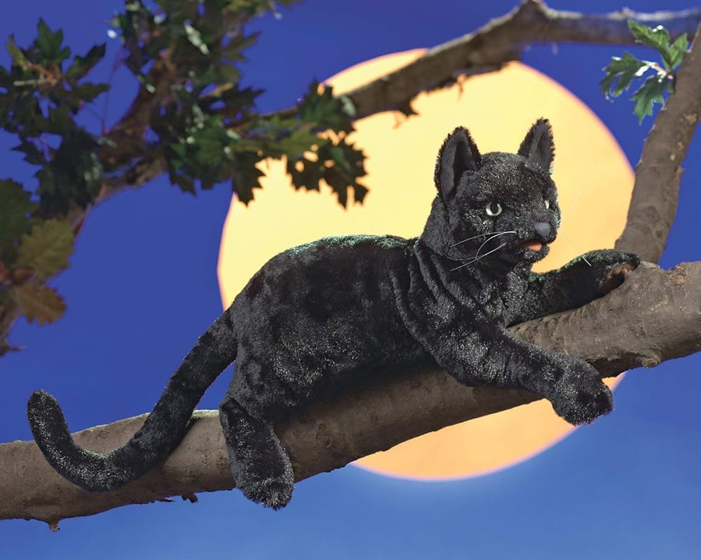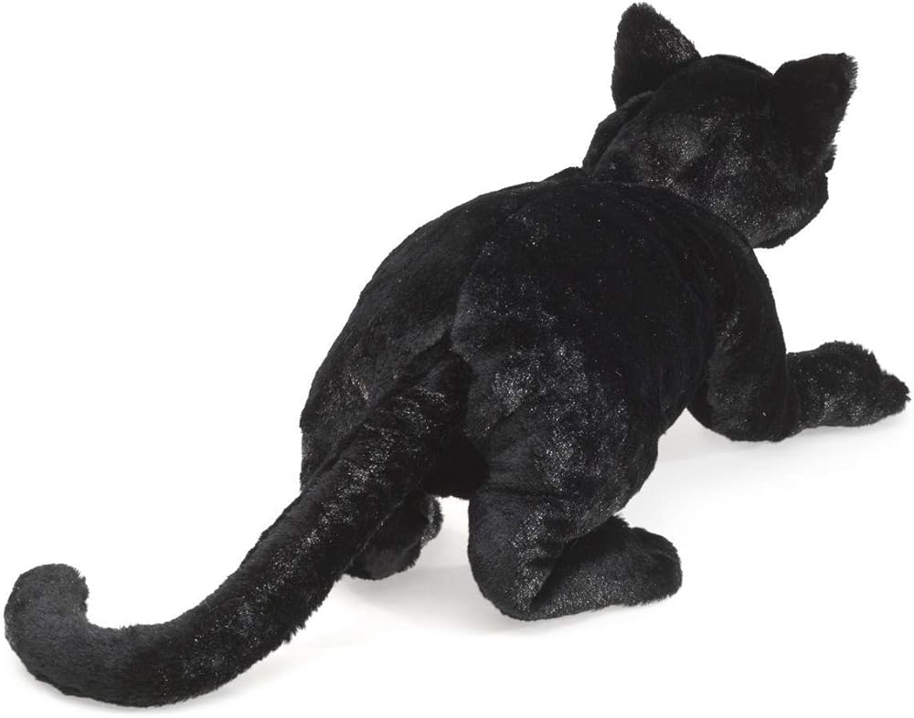 Feline fans don't care much about superstition when it comes to the Folkmanis Black Cat puppet. Stretched out and ready for playtime, this cool kitten has sleek, short, ebony plush with movable mouth and front legs. Intense eyes convey that this cat means business to any who dare cross its path. Ideal for use in interactive stage and puppet theater, Folkmanis Puppets are also great for teaching, daycare, school, pretend play, games and parties, or to pair with a book for storytelling. Easy to feed and care for, just add lots of love and snuggly fun. This puppet measures 20 x 5 x 6 Inch (LxWxH). Folkmanis has been encouraging young imaginations to blossom since 1976 with its innovative and engaging specialty puppets, promoting creativity and discovery while winning nearly every industry, child development and kid-tested award. Folkmanis has grown to become the premier manufacturer of plush puppets worldwide, offering over 200 of the most heartwarming and realistically designed creatures--both exotic and familiar--on the market today. (Birthday: January, 2014).