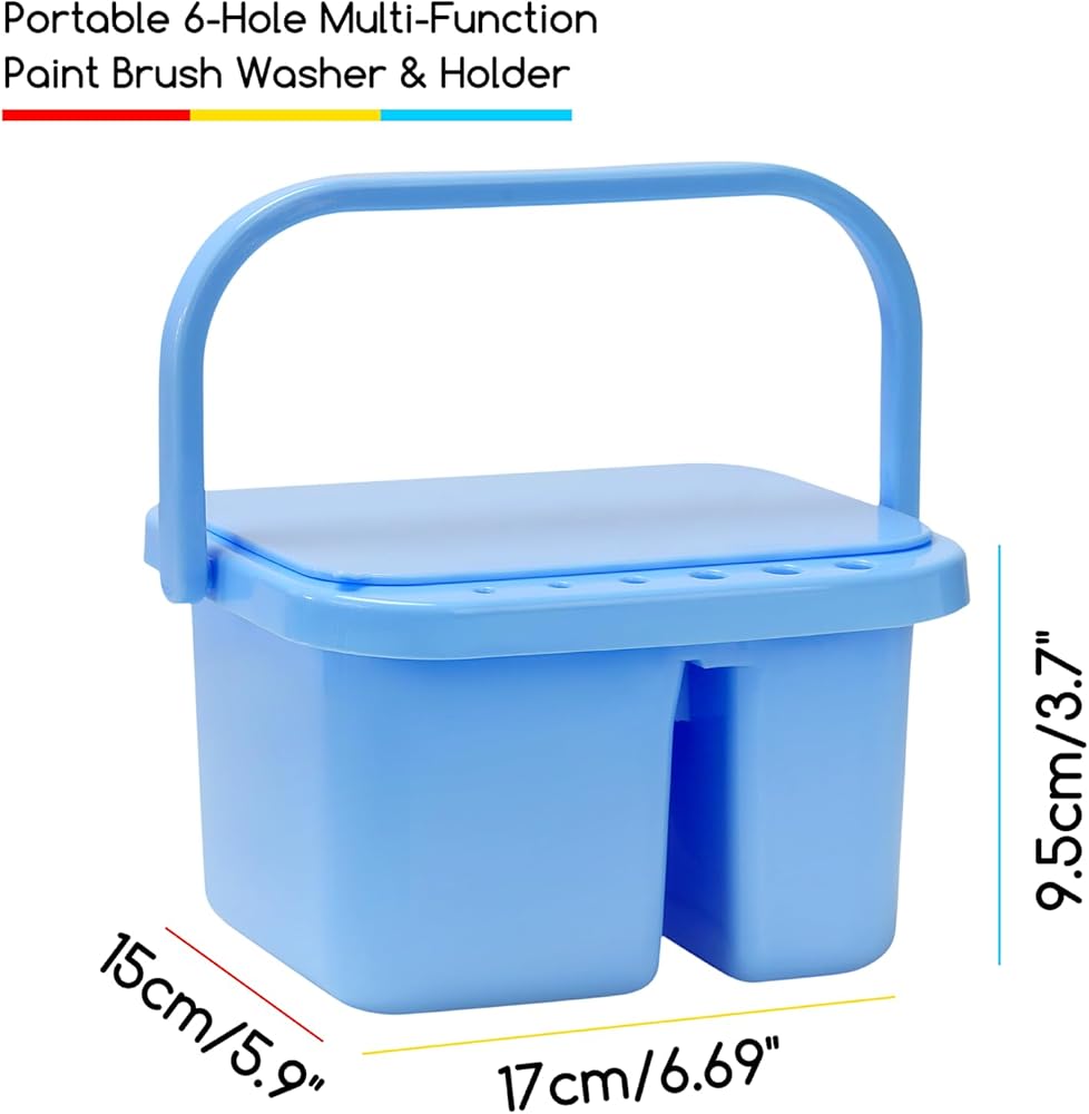 Meeden Paint Brush Cleaner & Holder: غسالة فرشاة الطلاء ذات الوظائف ذات الـ 6 حفرة محمولة مع لوحة غطاء ومقبض لتنظيف الأكريليك والألوان المائية والدهانات القائمة على الماء