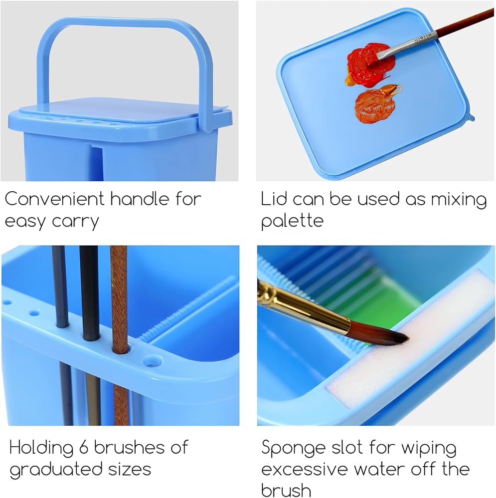 رفيق الفن المحمول: سوف تتلقى أحواض فرشاة الطلاء البلاستيكية. الحجم هو 6.89 × 5.91 × 3.74 بوصة. تصميمه المدمج وخفيف الوزن مع مقبض يجعله الأداة المثالية للفنانين في هذه الخطوة. إنه أمر لا بد منه بالنسبة لمجموعة الإمدادات الفنية الخاصة بك ، سواء كنت في الطلاء الزيتي أو مجموعات الغواش أو طلاء الإصبع. يحافظ هذا المنظم على أن فرشك آمنة ، ومساحة العمل الخاصة بك جافة ، ومجموعة البالغين بالألوان المائية سليمة. قل وداعا للانسكابات والفوضى.