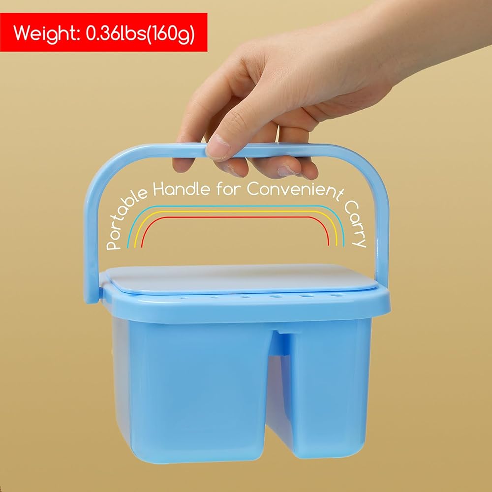 غسالة فرشاة الطلاء متعددة الوظائف: حاوية ماء فرشاة الطلاء مصنوعة من البلاستيك عالي الجودة. إنه صلب ودائم ، وهو مناسب للاستخدام على المدى الطويل. ويشمل غطاء لوحة و 3 أحواض تنظيف. يحتوي حوض فرشاة الطلاء على 6 ثقوب مختلفة الحجم وإسفنجة حول الحافة. بالإضافة إلى ذلك ، هناك مقبض حمل محمول. هذه الأداة الكل في واحد هي الذهاب إلى التنظيف والتنظيم وتخزين فرشاة الطلاء الخاصة بك.
