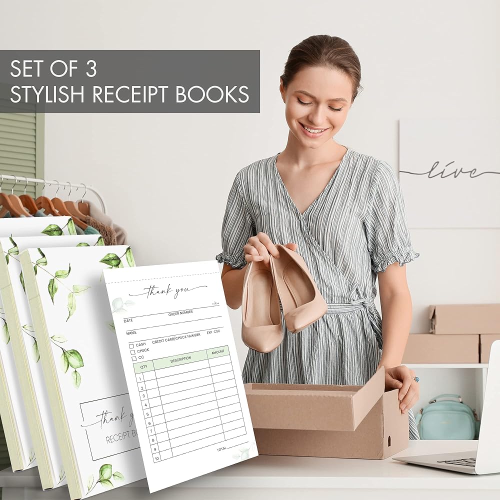 المساحات الخضراء الجميلة شكرا لك مجموعة دفتر إيصال 3 للشركات الصغيرة - جمالية وسهلة الاستخدام منصة الإيصال - الإمدادات التجارية المثالية التي تساعدك وعملائك السعداء على البقاء منظمة