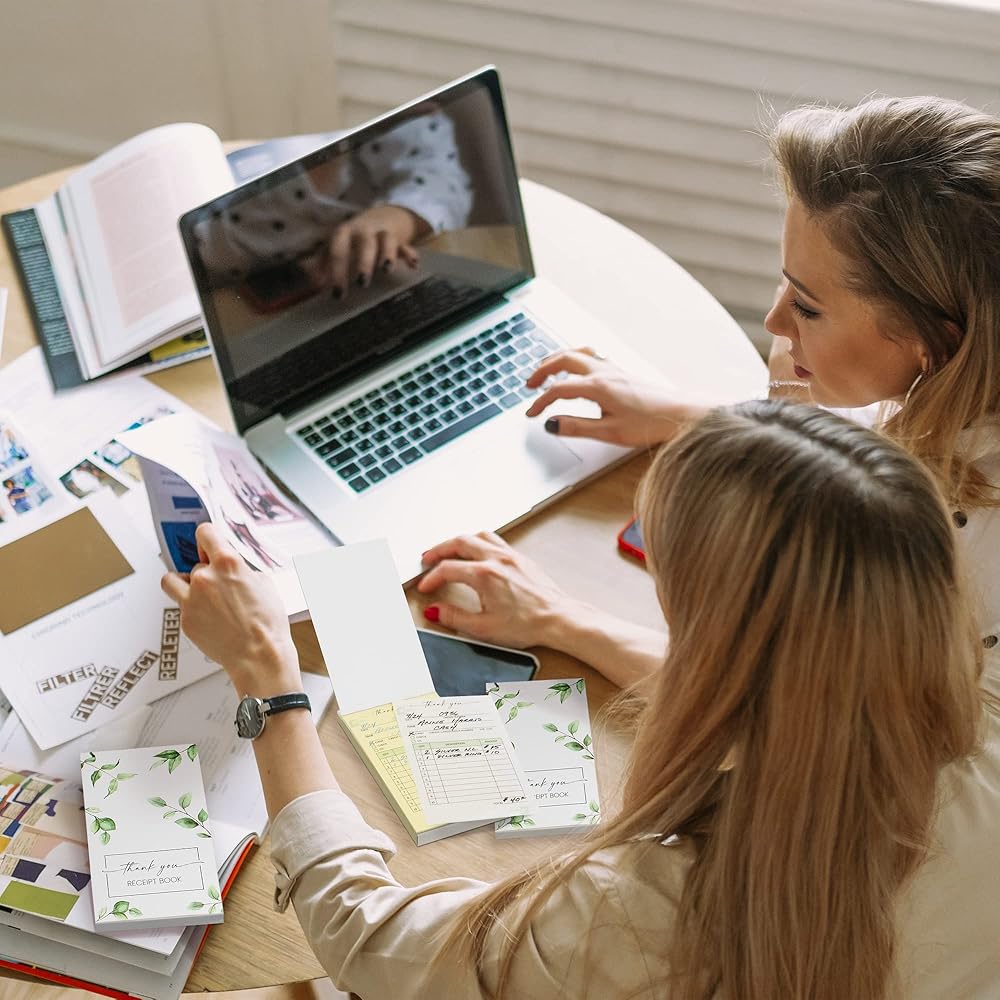 Beautiful Receipt Books Set of 3 By ZICOTO: An Absolute Must-Have For Small Business Owners. A professional appearance is the backbone of creating a thriving and successful small business. Thanks to the beautiful invoice book you can not only keep track of your sales & incoming payments, but also have a stylish receipt copy ready for your clients and customers saying “thank you”. The premium paper of the receipt books ensures that transfer to the yellow duplicate paper is seamless. But there's even more: the notepad comes with an extra fixed inlay (at the back) for you to easily insert after the yellow paper - for neat, clean writing and to prevent ink from bleeding through. Full points for this smart feature! With its handy size of 3.4x5.5”, the receipt book fits perfectly into any carry case so you will always have it at hand when a new sale is in the works. Each of the 50 sturdy pages is easy to tear off along the perforation, but won't fall out - premium invoice forms all the way! To sum it up: the practical and easy to use “thank you” receipt book facilitates the organization of your business operations. A true game changer for any small business owner, whether you have a creative art studio, own a cute boutique, delight your clients as a caterer or run another small business. Manage your small business finances in style and impress your clients & customers with the cute minimalistic greenery receipt forms by ZICOTO!