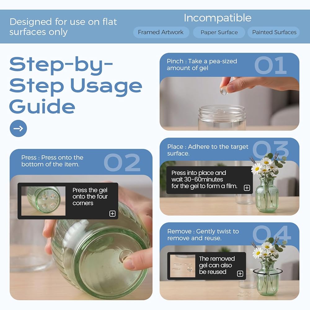دائم ومخلفات مجانية: استخدم جلنا الصافي للمعارض المتاحف لتأمين مقتنياتك العزيزة لمنعها من السقوط بسبب الزلازل أو اللمس العرضي. يظهر Ruiot المعجون القابل لإعادة الاستخدام وخالية من البقايا وغير سامة. حماية طويلة الأمد ، غير مرئية لمجموعتك.