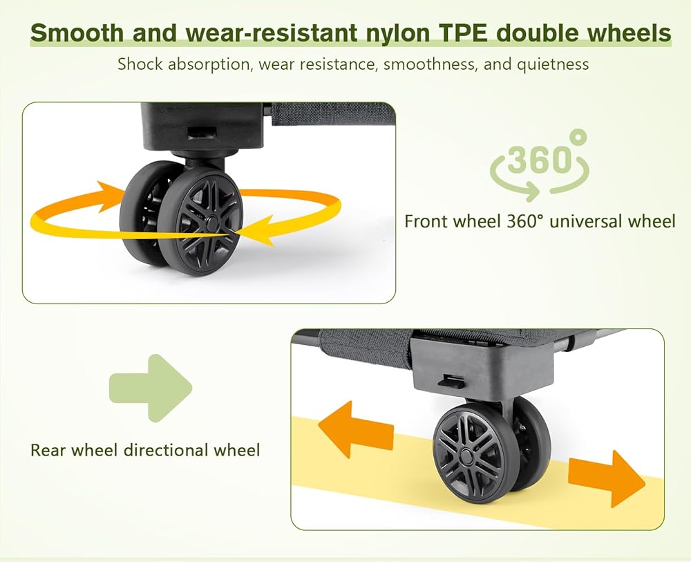 عجلات مزدوجة ناعمة: العجلات المزدوجة هي امتصاص الصدمات ، صامتة ، ناعمة ومقاومة للارتداء. يمكن للعجلتين العالميتين الأماميتين أن تعدلوا بسهولة الاتجاه 360 درجة دون أن تتعثر ، ويمكن للعجلات الاتجاهية الخلفية منع الانزلاق والانتقال. يوفر حامل القطط تجربة سفر مريحة للحيوانات الأليفة