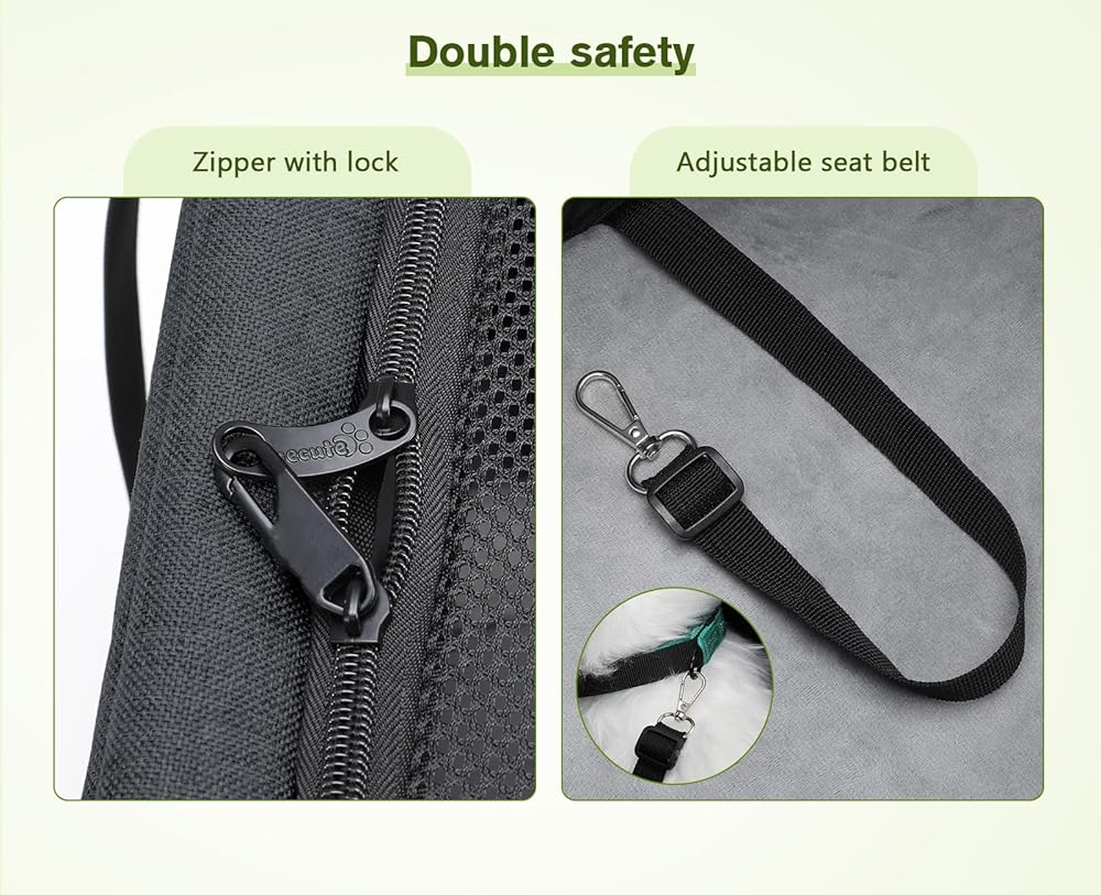 آمن ، مريح ، قوي: حاملة القطط المدمجة في إطار سلكي سميك سميك قابلاً للطي. تطوي لأعلى عن طريق التراجع عن مشابك الإطار الصلب الثابت. توفر السوستة مع قفل السلامة وحزام أمان قابل للتعديل الداخلي طبقة إضافية من الأمان للحيوانات الأليفة
