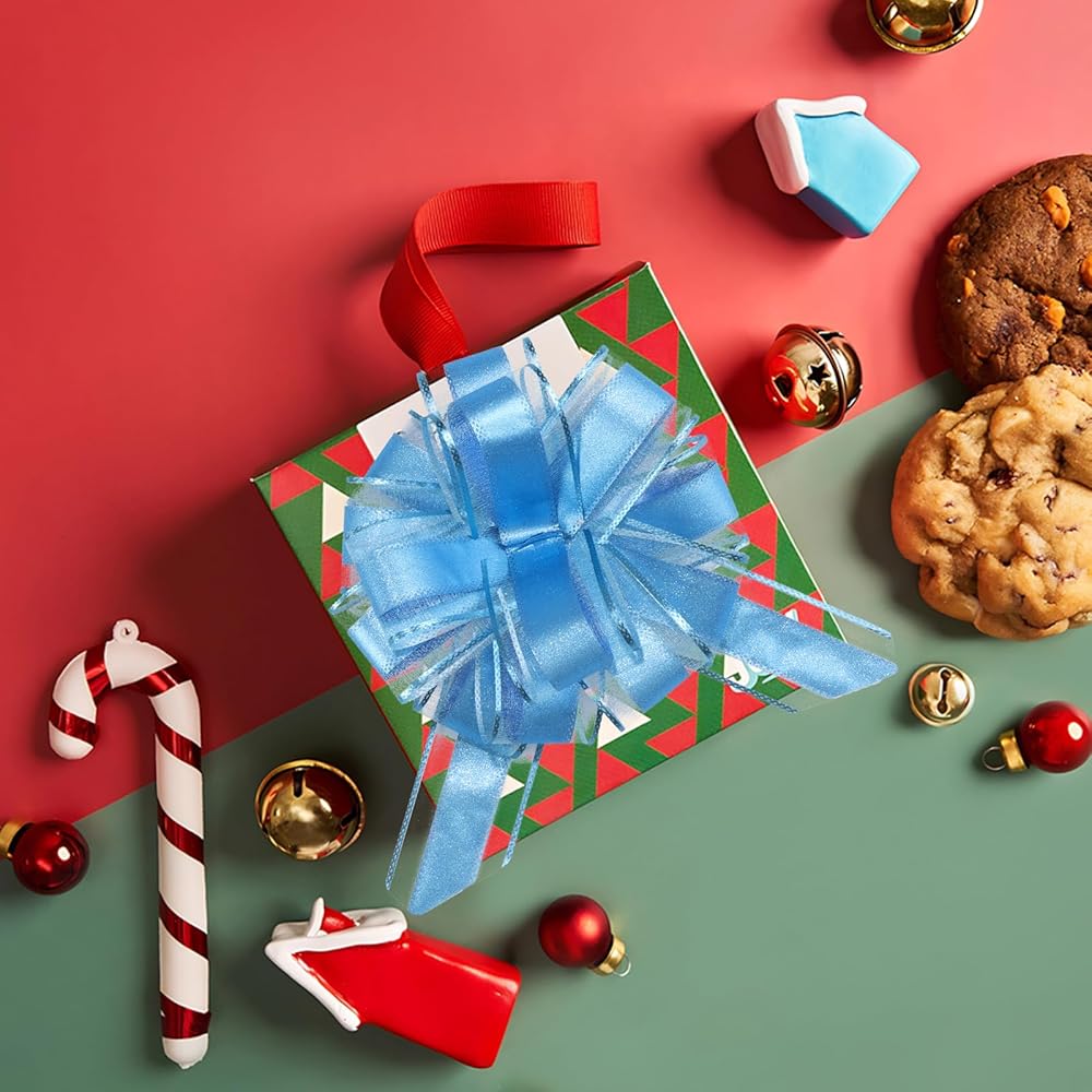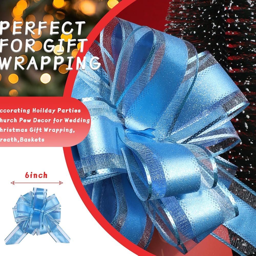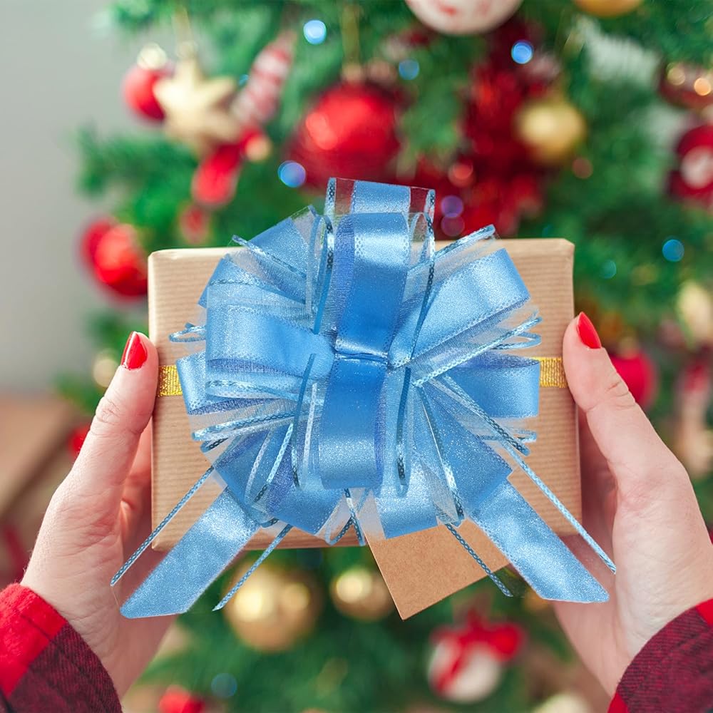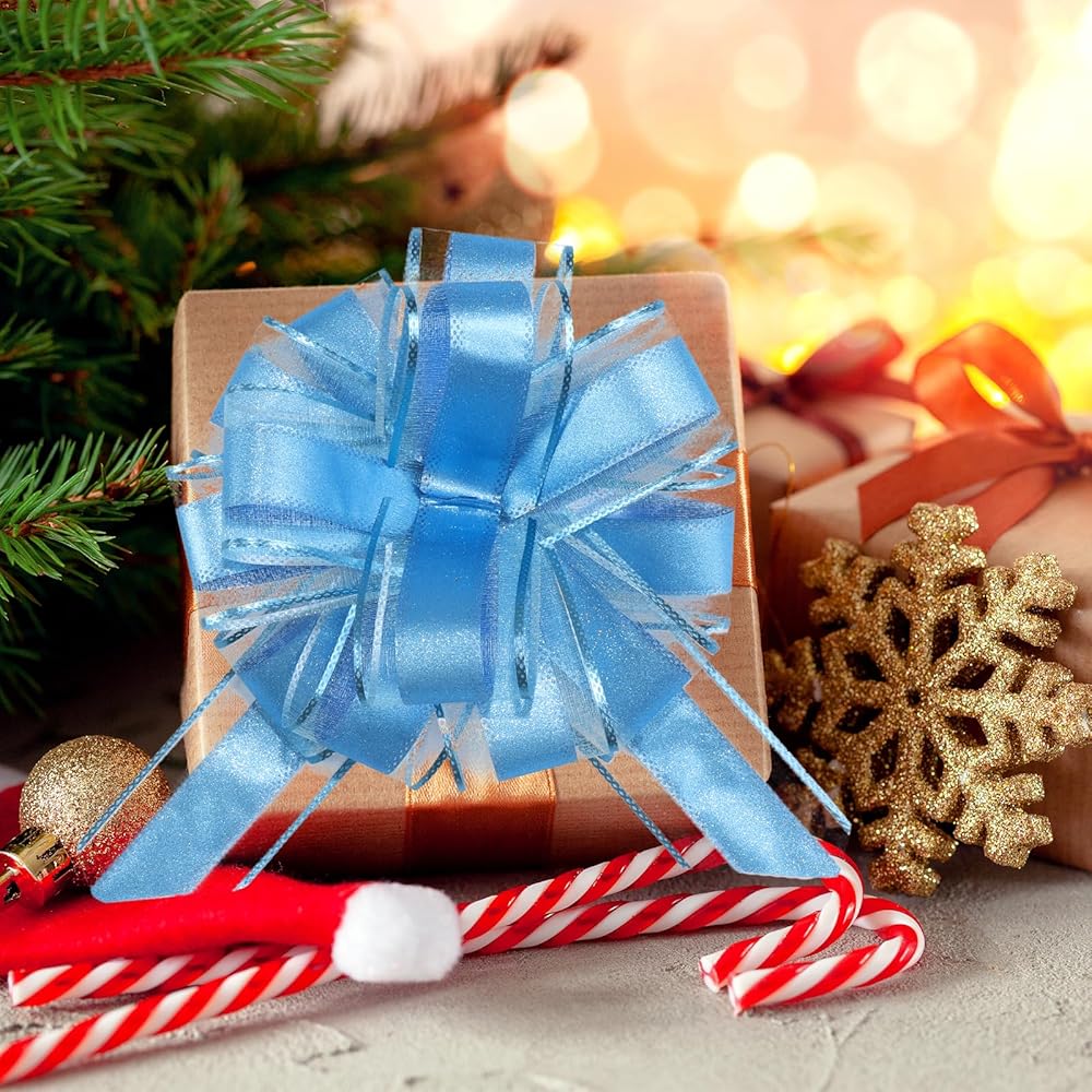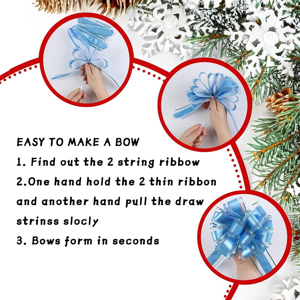 • This gift bow is made of organza, which is safe and strong, not easy to tear and fade, and can be safely pulled; Each ribbon used for bows has a total length of approximately 47.2 inches and a width of approximately 2 inches; Finished Christmas gift bow with a diameter of 6 inches, small and portable.