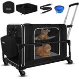 PetSkd Side Carier Carrier Carrier مع صندوق القمامة لسفر السيارات ، 24 "x17" x17 "حاملة حيوانات أليفة كبيرة إضافية لقططين أقل من 55 رطلاً ، حاملة قطط ناعمة مع سحاب قفل للطبيب البيطري (أسود)