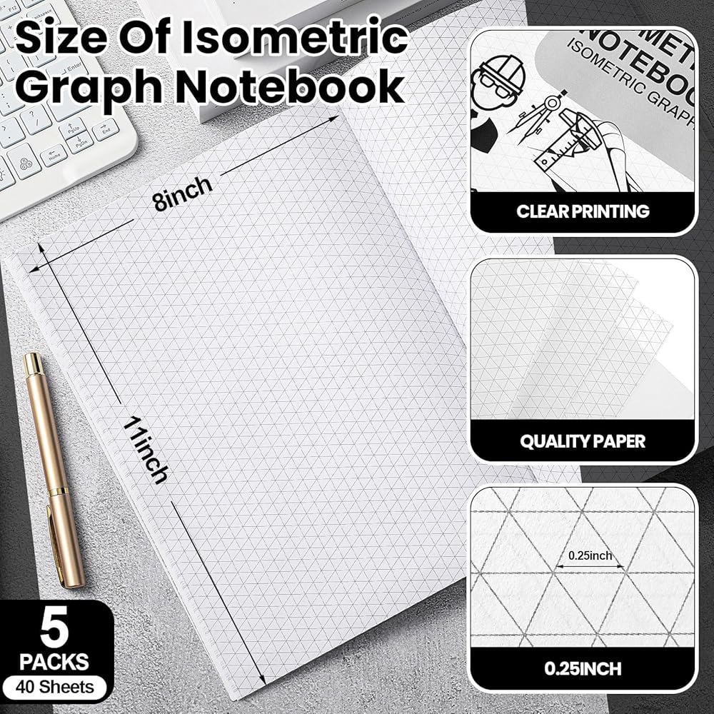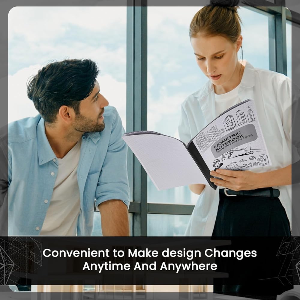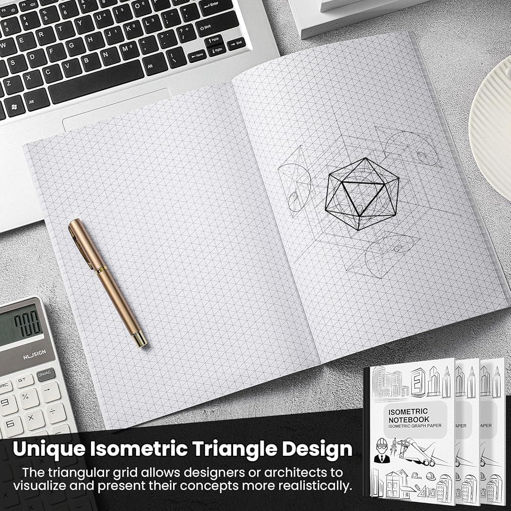 The clean, white color of the pages helps reduce visual fatigue, presents a clear contrast for colored inks, and ensures the readability of your work, adding an elegant simplicity to your Isometric graph paper notebook.