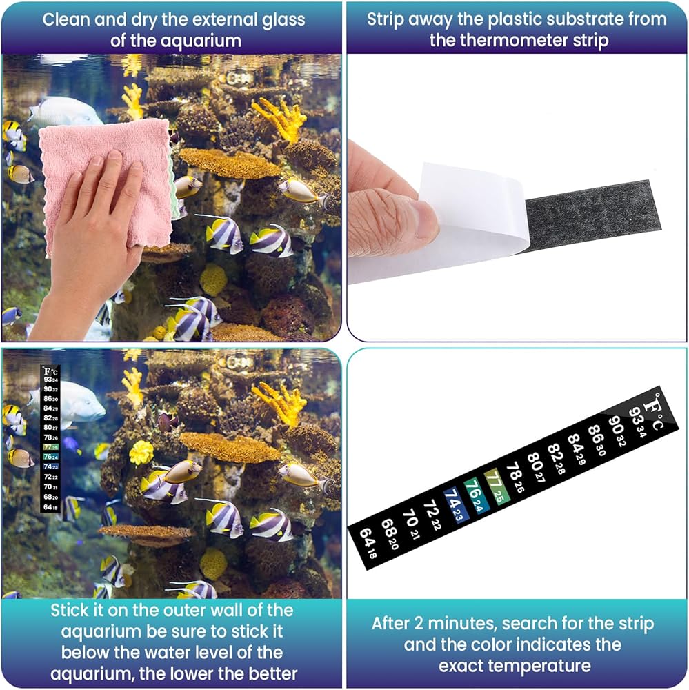 Wide Application: Suitable for all types of aquariums, including freshwater and saltwater tanks. The aquarium thermometer strip is perfect for fish tanks, reptile enclosures, and other environments where temperature monitoring is crucial.