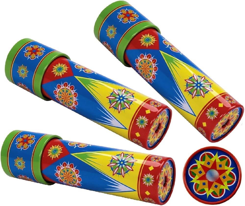 Prepare to be mesmerized by the brilliance of colors and patterns with the Schylling Classic Tin Kaleidoscope Party Set. This awesome bundle includes 3 tin kaleidoscopes, each packed with wonder and ready to captivate your imagination. With their timeless Schylling designs, these kaleidoscopes continue to astound and dazzle all who lay their eyes on them. Unlike plastic and cardboard kaleidoscopes, these metal creations offer a nostalgic tin toy feel that adds an extra touch of charm to the experience. Explore the endless possibilities of light and reflection as you twist and turn these kaleidoscopes, revealing vibrant and intricate patterns that never cease to amaze. Educational and entertaining, they foster creativity, imagination, and a constant sense of fascination. This party set is not only a perfect gift but also an ideal choice for schools, party favors, stocking stuffers, baskets, special needs, and stress relief. It provides endless moments of joy and serves as a visual escape from the ordinary. Suitable for ages 3 and up, the Schylling Classic Tin Kaleidoscope Party Set guarantees fun for the whole family. Each kaleidoscope measures 7.12" x 2.12" x 2.12", offering a comfortable grip for both young and old alike. To keep your kaleidoscopes safe and organized, this exclusive bundle includes a "Matty's Toy Stop" storage bag. Take the magic of kaleidoscopes with you wherever you go, and let your imagination run wild with this extraordinary party set. Experience the wonder and fascination of the Schylling Classic Tin Kaleidoscope Party Set. Delve into a world of ever-changing colors and patterns that will leave you awestruck with each twist and turn.