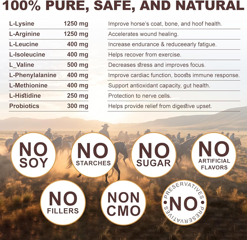 Amino Acids for horses supplement is 100% safe for pregnant mares to senior/pasture or naments, rescues, performance/working horses and everything in between!
