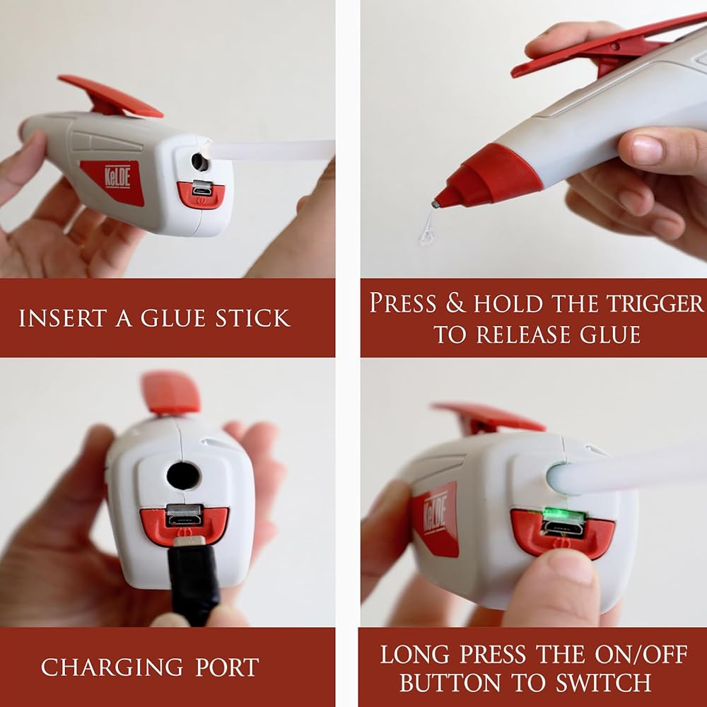 KeLDE Cordless Glue Gun, Rechargeable USB Wireless Hot Glue Pen Set With 10pcs Mini Glue Sticks, 30s Fast Preheating Build-in Battery Auto Power-off, For DIY Crafts, Project, Quick Repairs