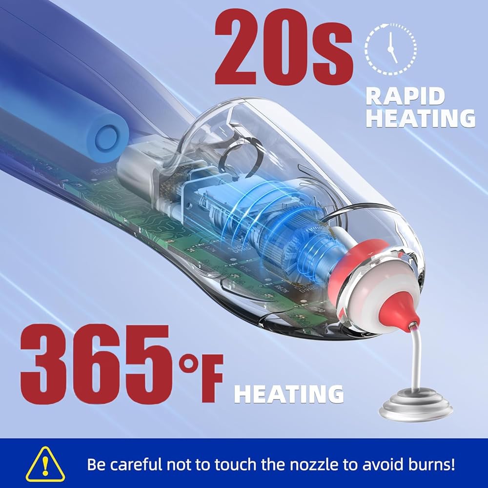 ❤【30 second Fast Preheating & Power Indicators】- Get started quickly! This wireless hot glue gun preheats in just 30 seconds. Long-press the button to activate it, and a red light indicates low battery.