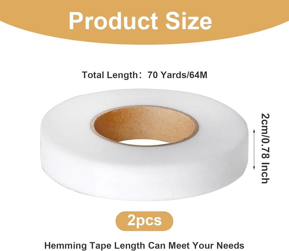 Extra Long Size: The size of our iron-on fabric tape is 0.78inch x 70 yards of non-woven fabric adhesive tape, you will receive 2 rolls of double-sided iron-on Hemming tape, and the size is long enough to meet your use needs, no need to worry about the length is a matter of convenience for you to use at any time.