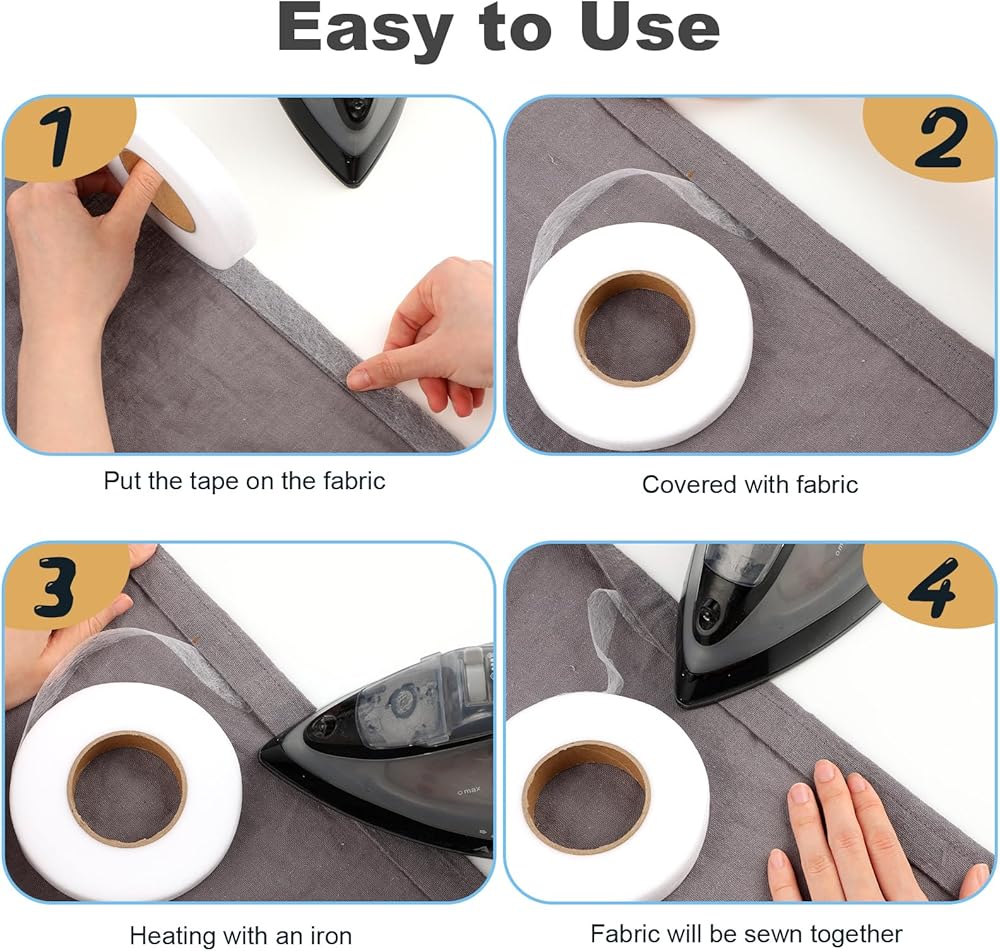 Wide Application: Sewing witchcraft hemming tape is not only suitable for a variety of materials, such as ordinary fabrics, gauze, canvas, denim, etc., it can also be used for clothing repair, trouser leg shortening, hemming, curtain repair, etc. It is suitable for those who don't know how to sew, this non-woven fabric tape allows you to change the length of your pants very quickly without even leaving visible seams, increasing comfort and making the silhouette of the garment fit better.