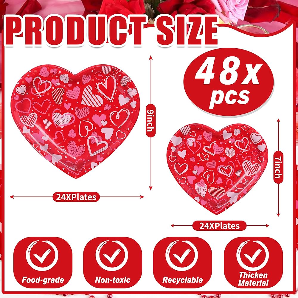 【إمدادات حفلات عيد الحب】 ستتلقى لوازم حفلات عيد الحب ، وتشمل ألواحًا على شكل قلب 24pcs 9 بوصة ، وألواح قليلة على شكل قلب ، 24pcs 7 بوصات ، بما يكفي لك لعقد حفلة عيد الحب الرومانسية التي لا تنسى.