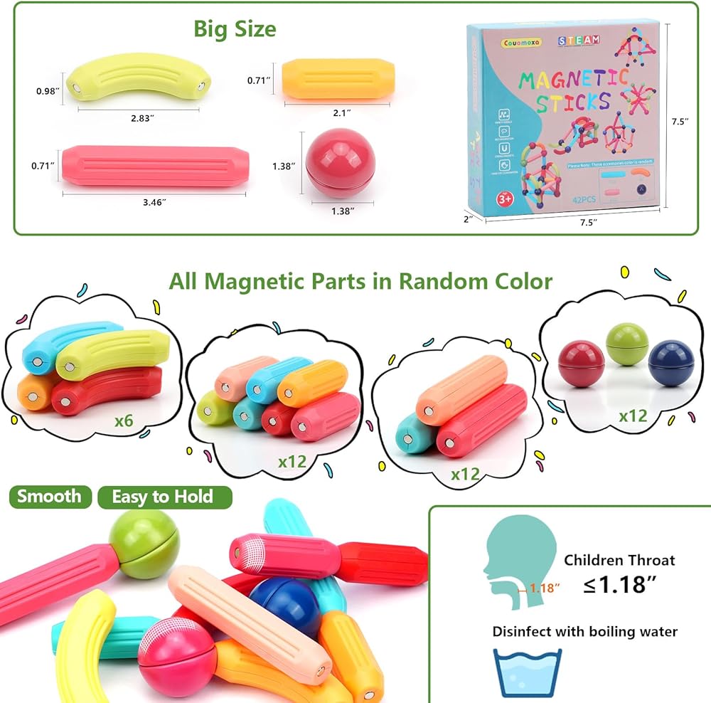 لبنات البناء المغناطيسية Couomoxa للأطفال: 3 4 5 6 7 7 8+ سنوات من ألعاب التعلم التعليمي للعلم العلمي للبنين - سن 3+ لعبة ما قبل المدرسة في مونتيسوريين للأطفال الصغار
