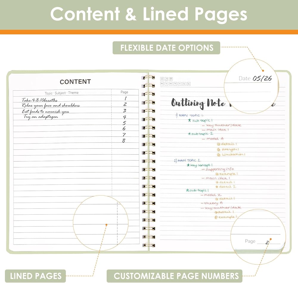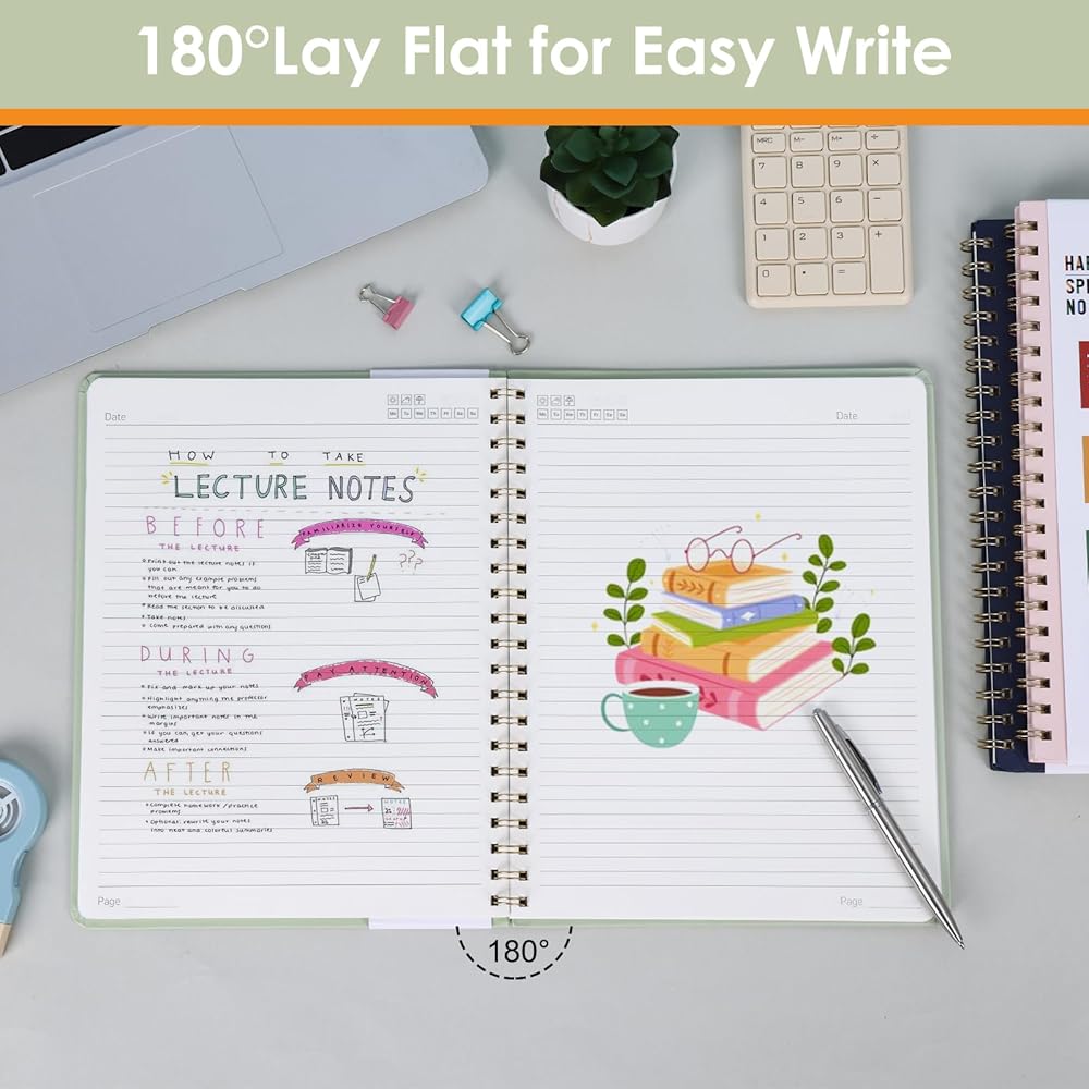 【تصميم حلزوني مسطح】 دفتر Notebook Journal 180 ، يحافظ تصميمه المسطح على أنه مسطح بعد فتحه ، مما يجعل القراءة أكثر ملاءمة وأكثر كفاءة. تحتوي كل صفحة على تاريخ وصفحة ، مما يجعل من السهل تتبع التواريخ وتسجيل صفحات.