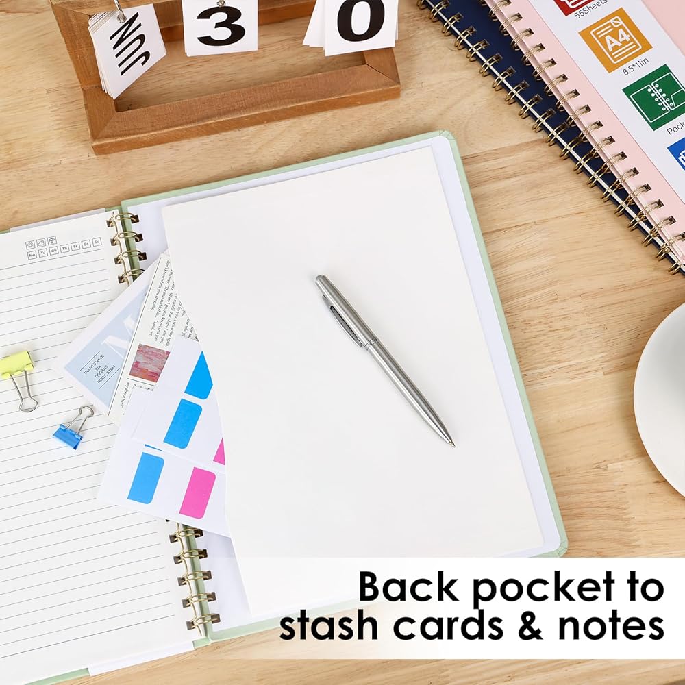 【الجيب الداخلي والإغلاق المرن】 يتضمن هذا الغطاء الخلفي للمجلة الحلزونية جيب تخزين داخلي قابل للتوسيع لتتبع بطاقات المواعيد والملاحظات والإيصالات. يمنع نطاق الختم المرن من فتح دفاتر الملاحظات عن طريق الخطأ ويحمي خصوصيتك.