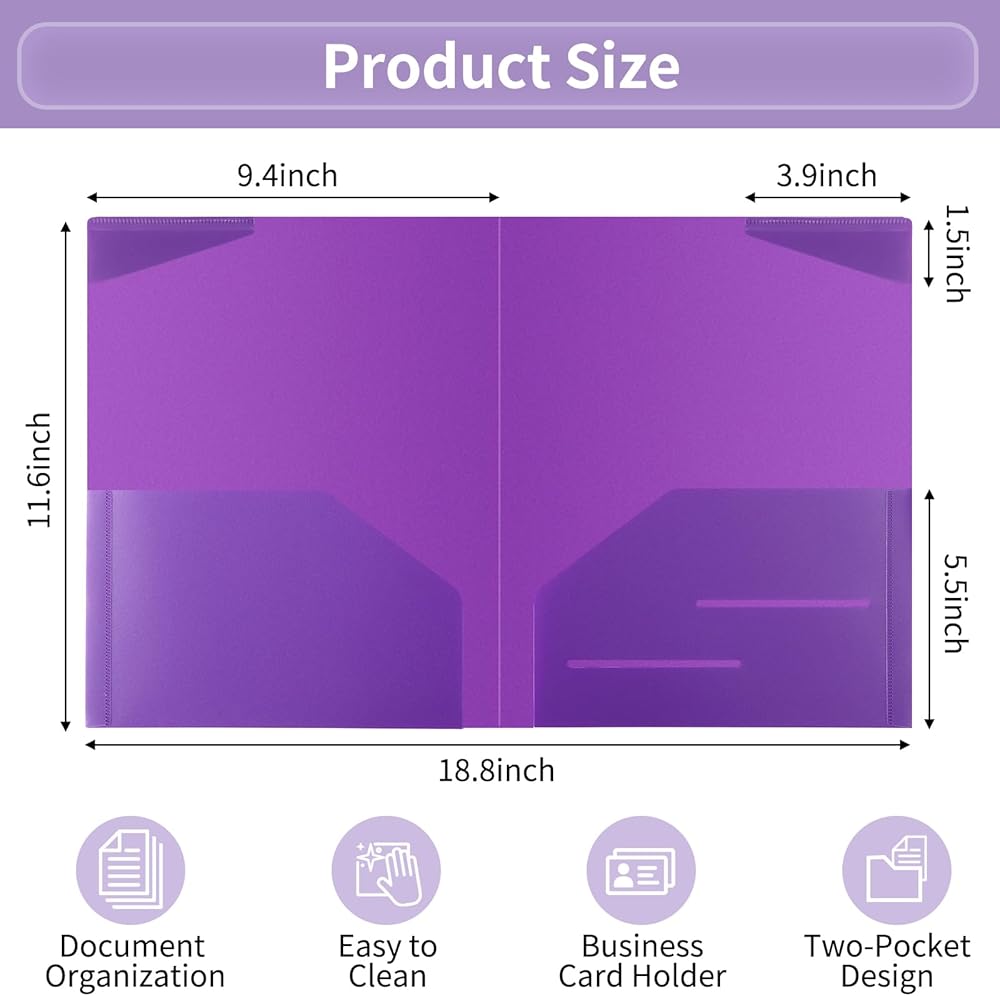 حجم الحرف: 9.4 '× 11.6' '، يناسب تمامًا ورقة حجم الرسالة وهي 8.5' 'x 11' '. تم تصميمه مع 4 جيوب داخلية ويمكن بسهولة الاحتفاظ بما يصل إلى 135 ورقة من الورق. يحتوي على خطين منحوتان لإدراج الملاحظات أو الجدول الزمني. إنه حقًا اختيار جيد للكلية أو المدرسة أو المكتب.