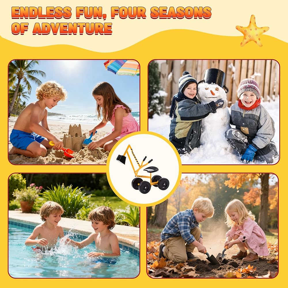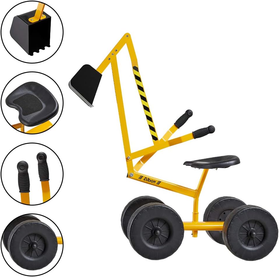 ALBOTT Ride on Sand Digger Excavator Toys تعمل رافعة مع عجلات 8 بوصات ومقعد دوران 360 درجة (أصفر)