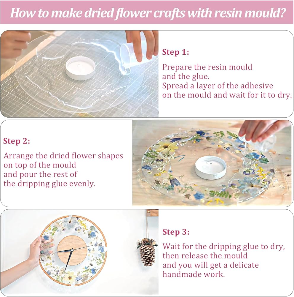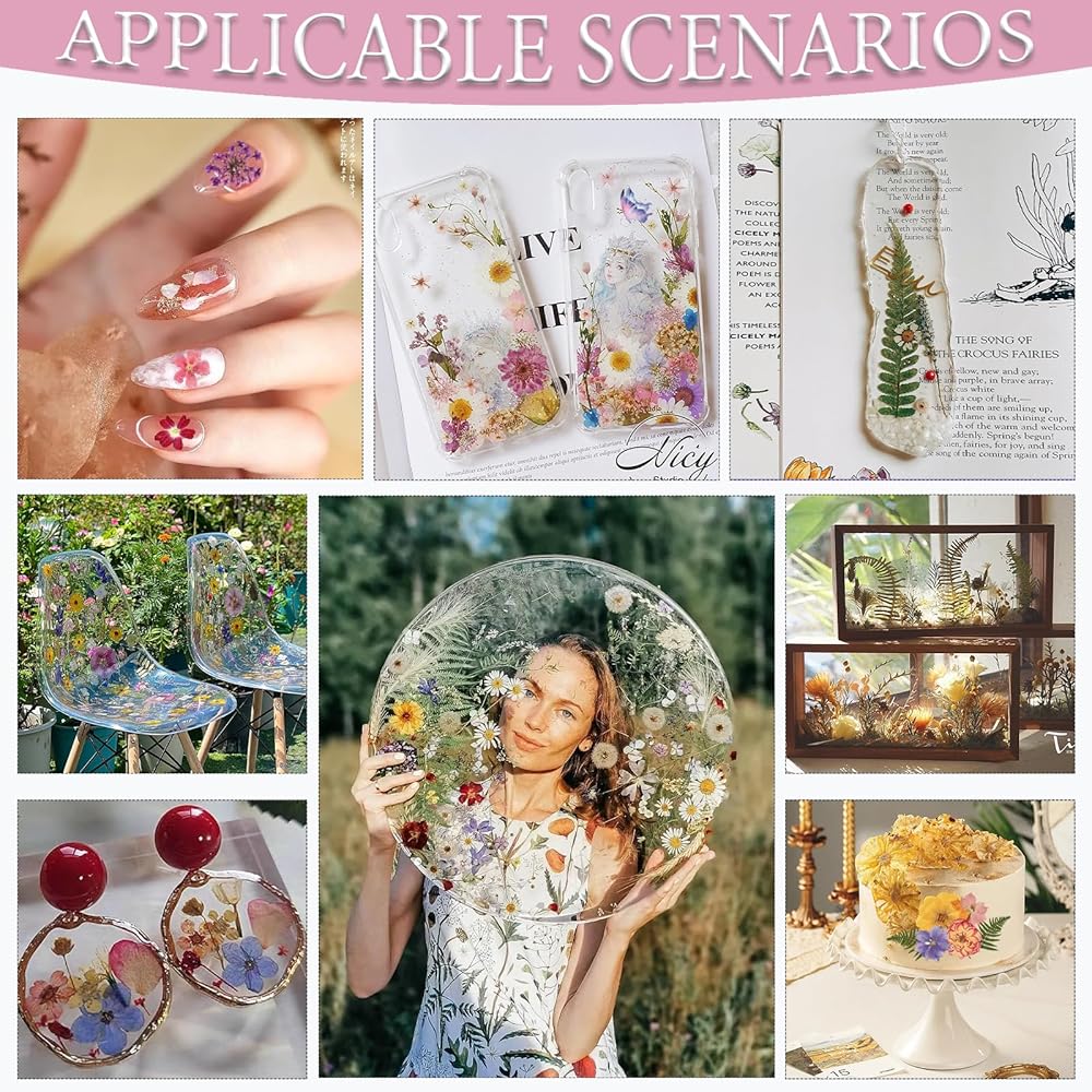 استخدامات مختلفة: يمكن تطبيق الزهور الطبيعية المضغوطة للراتنج على نطاق واسع على فن الأظافر ، قوالب الراتنج ، تصميم المجوهرات DIY ، حالة هاتف الراتنج ، بطاقة ملاحظة ، قرطاسية ، دعوات زفاف ، مظاريف ، زجاج ملون ، مرجعية ، صانعي الشموع ، صنع الصابون ، زينة المائدة و Scrapbooking والأثاث والأعمال الخشبية