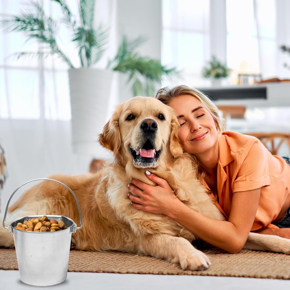 الاستخدام متعدد الأغراض: استخدم هذا الدلو متعدد الاستخدامات للتغذية أو الري أو كحاوية تخزين لمستلزمات الحيوانات الأليفة أو الألعاب أو العلاجات.