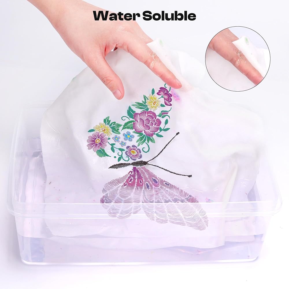 قابل للذوبان في الماء: مصنوع من مادة نشا الذرة ، يذوب هذا الاستقرار في الخياطة في الماء البارد مع عدم وجود بقايا ، مما يضمن أن يكون التثبيت لطيفًا على الأقمشة وآمنة للجلد