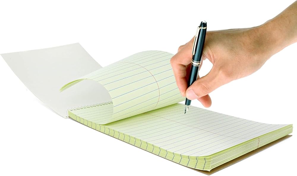 ✓SPECS – The steno pads classic flip-top format long preferred by stenographers and reporters gives quick access to notes and lists. The 5/16 spacing between lines easily to write. The steno book has double-sided paper, 70 Sheets, redline, Gregg ruled and green tint pages.