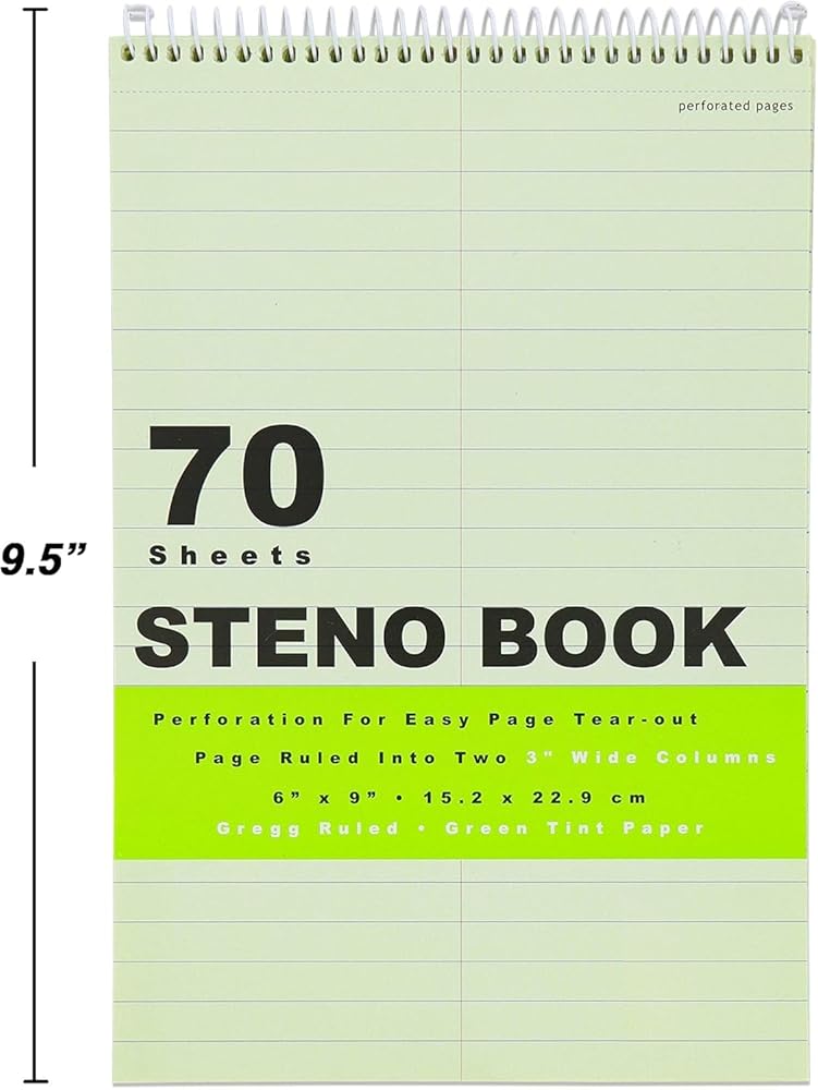 ✓QUALITY – The steno books are made with high-quality paper and ink bleed resistant. The steno notebook paper handles mechanical pencils, gel pens, ink pens, and highlighters. The steno book spiral with green tint is perfect for your project at school or home.