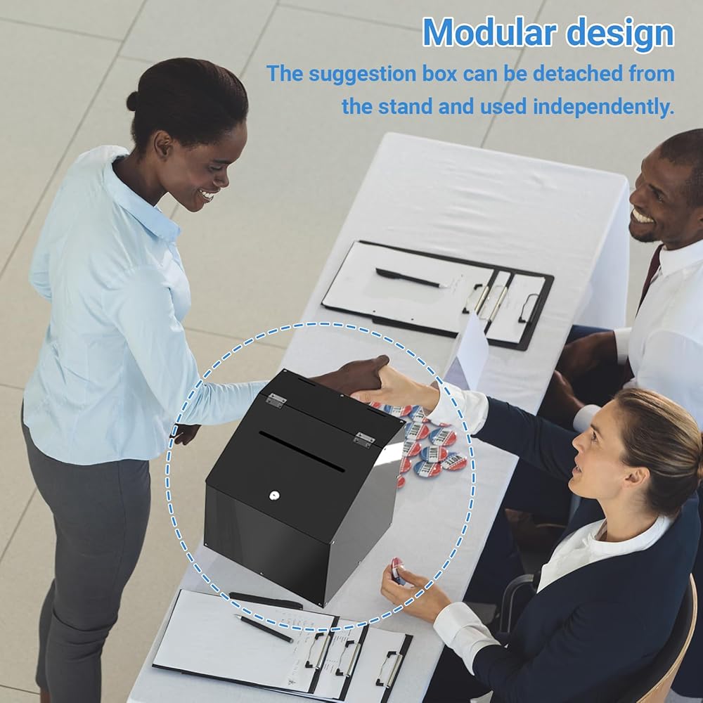 Multi-Purpose Suggestion Box with Stand This GARVIN suggestion box is designed for collecting donations, votes, or feedback at events, schools, churches, and public spaces. Perfect for fundraising, elections, contests, and community engagement