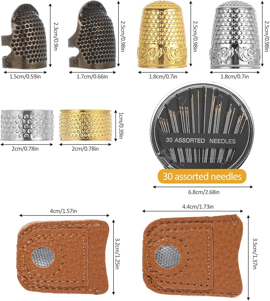 Value Set: You will receive 8 pieces thimbles for hand sewing and 1 pc sewing needle box (30 pieces), sufficient styles and sizes provide you with the best protection, allowing you to complete sewing tasks flexibly