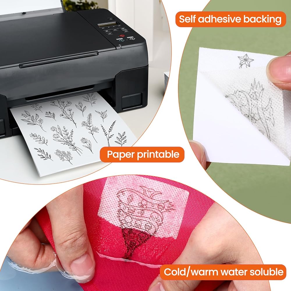 • Self Adhesive and Printable: our water soluble papers for embroidery feature with self adhesive and printable design, each water soluble sticker paper embroidery is with a strong adhesive on one side, the self adhesive backing allows for easy application onto fabric, making it the perfect tool for all your embroidery projects