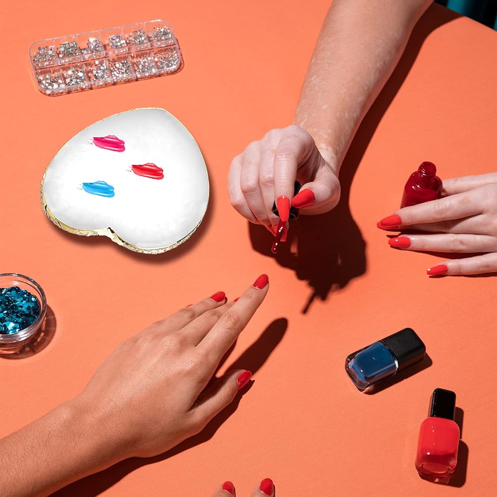 【Heart Shape】The nail palette is designed in a heart shape, which looks small and cute, and the edge is designed with gold binding, exquisite and practical, you can mix the colors and pigments you want at will